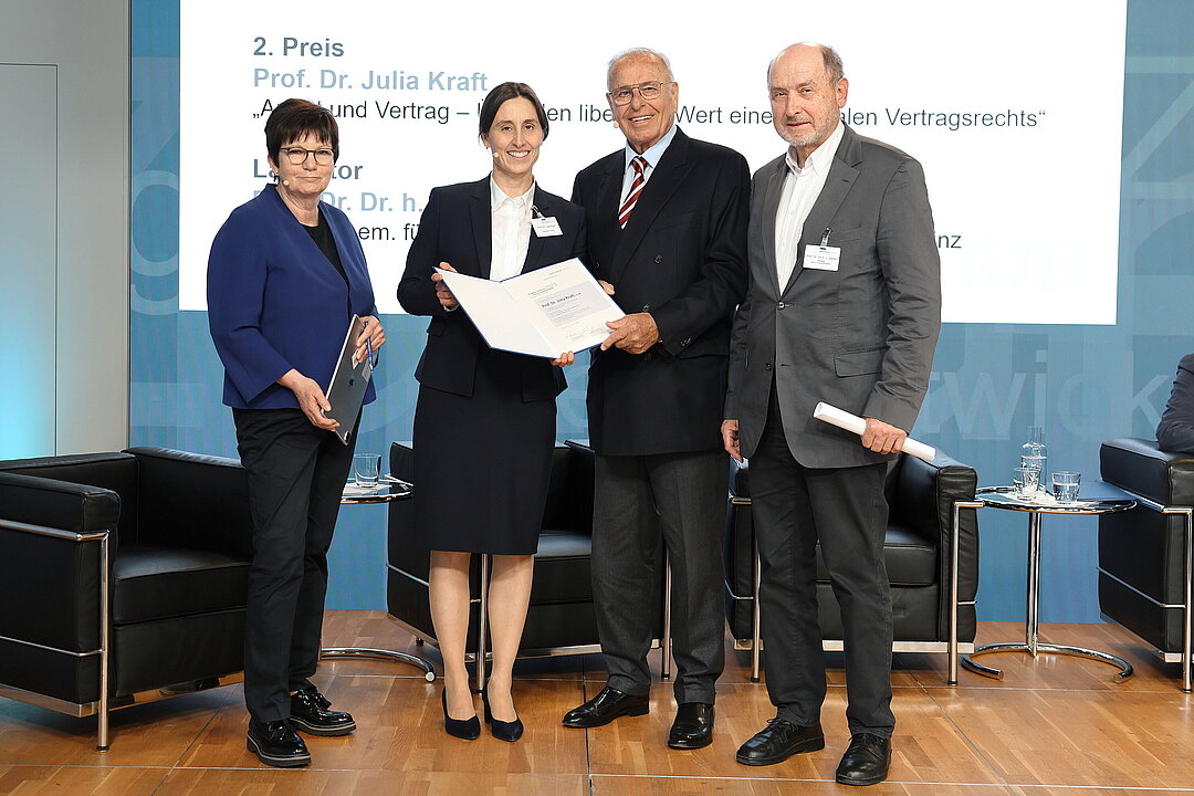 Diese wurde als erste Habilitation einer Frau von der Juristischen Fakultät der Heinrich-Heine-Universität Düsseldorf 2022 angenommen. Darin konfrontiert die Juristin die in der Rechtsökonomik geführte Umverteilungsdebatte mit einem auf Freiheit aufbauenden ökonomischen Ansatz. Julia Kraft zeigt, dass die Bekämpfung von Armut in einer sozialstaatlich fundierten Wohlstandsgesellschaft nicht ohne die Unterstützung des Vertragsrechts gelingen kann. Die Rechtswissenschaftlerin, die seit Mai 2023 die Professur für Bürgerliches Recht und Vertragsgestaltung an der Juristischen Fakultät der Universität Potsdam innehat, nahm den interdisziplinären Forschungspreis, eine der höchstdotierten Auszeichnungen auf dem Gebiet der Wirtschafts- und Sozialwissenschaften, am 17. Mai in München entgegen.