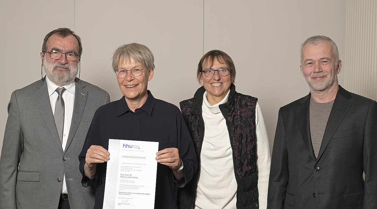 Dekan Prof. Dr. Martin Heil: „Chris-Carolin Schön ist eine herausragende Pflanzengenetikerin mit internationaler Ausstrahlung. Seit vielen Jahren arbeiten die Düsseldorfer Pflanzenwissenschaftlerinnen und -wissenschaftler eng und erfolgreich mit ihr zusammen. Sie ist geschätzt als höchst innovative Forscherin, die viele Impulse für die gemeinsamen Projekte gegeben hat und diese vorantrieb. Daher ehren wir sie heute mit dem Ehrendoktortitel der Mathematisch-Naturwissenschaftlichen Fakultät.“