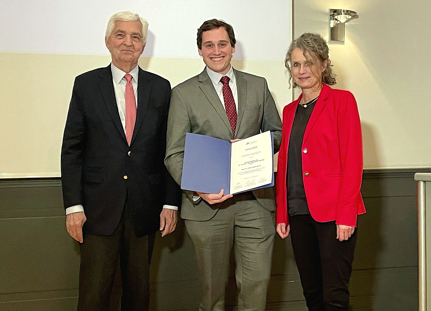 Dr.-Günther- und Imme-Wille-Stiftung Forschungspreis 2023 für Dr. Peter-Martin Bruch vom Universitätsklinikum Düsseldorf (Mitte). Daneben: GFFU-Präsident Dörrenberg und Prof. Dr. Stefanie Ritz-Timme, Kuratoriumsvorsitzende der Wille-Stiftung