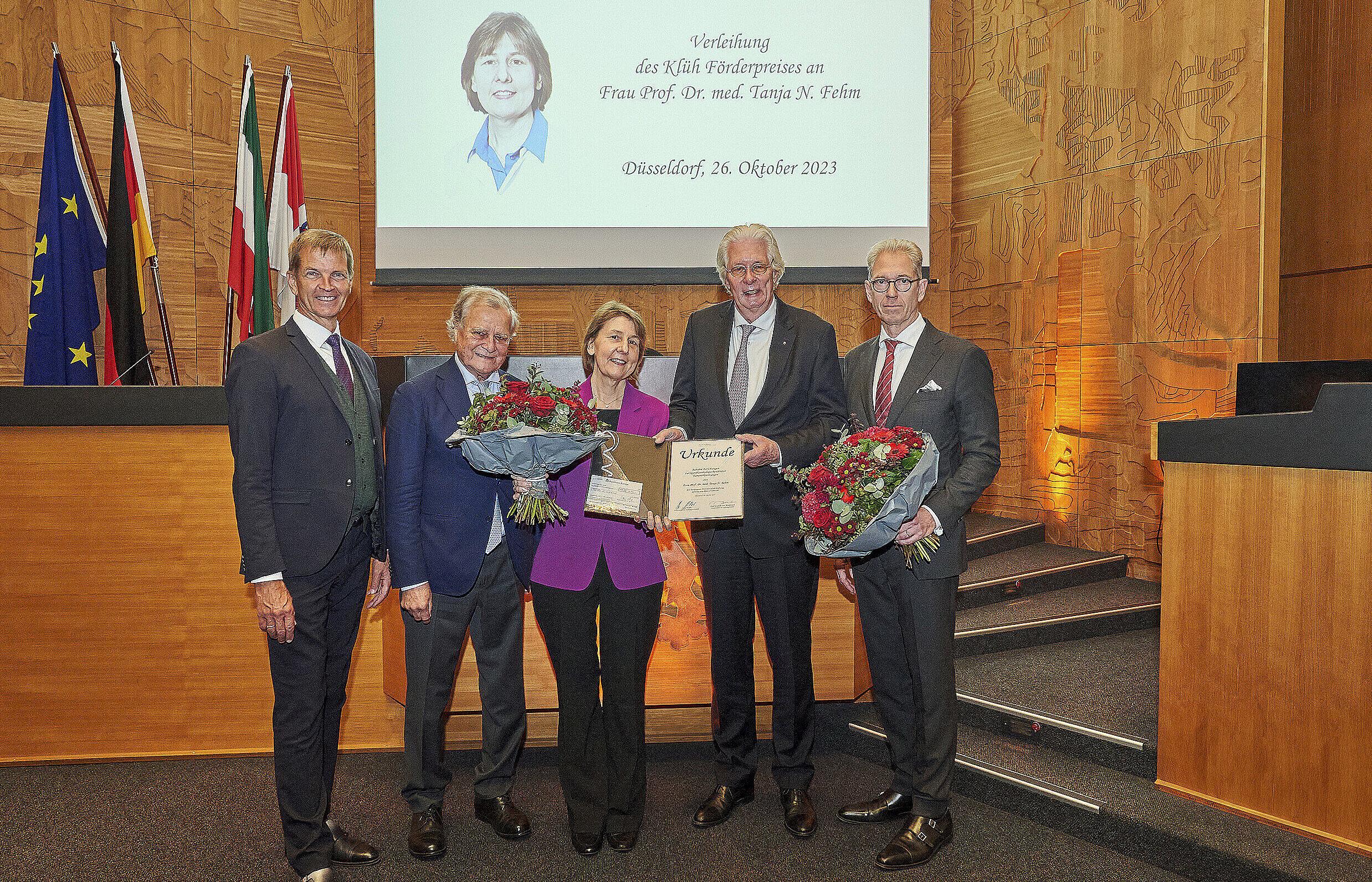 Der mit 25.000 Euro dotierte Preis der Klüh Stiftung zur Förderung der Innovation in Wissenschaft und Forschung geht in diesem Jahr an Prof. Dr. med. Tanja N. Fehm. Die Direktorin der Klinik für Frauenheilkunde und Geburtshilfe (UKD) mit dem durch die Deutsche Krebsgesellschaft zertifizierten Gynäkologischen Krebszentrum habe interdisziplinäre Behandlungskonzepte und modernste Therapieverfahren zum Nutzen der Patientinnen kombiniert, so die Begründung der Stiftung.