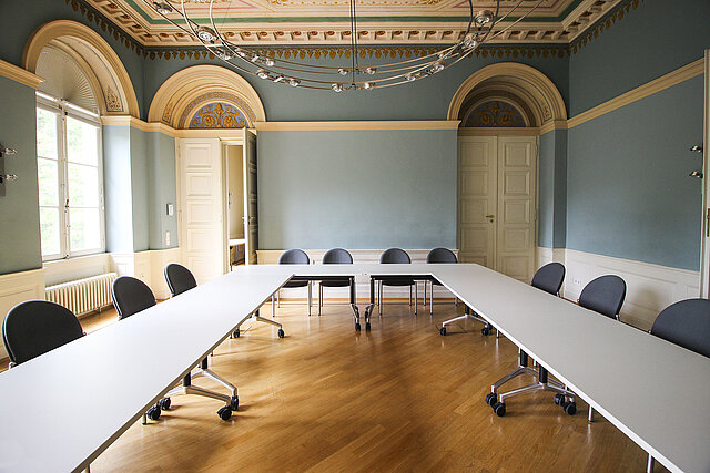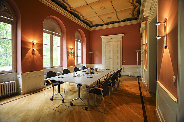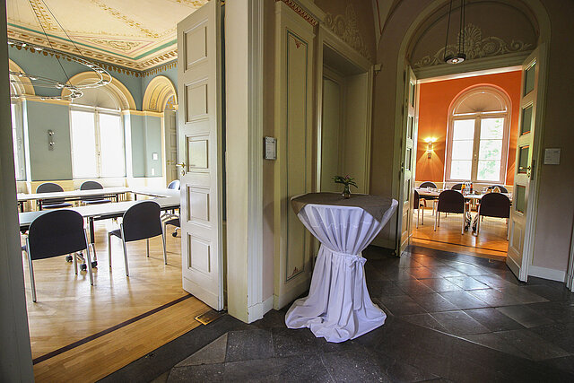 Blauer Salon: Der mit Parkett ausgestattete Blaue Salon bietet den idealen Rahmen für Veranstaltungen mit bis zu 55 Teilnehmer/innen.