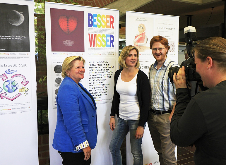 Mit der Wanderausstellung feiert die Heinrich Hertz-Stiftung ihr fünfzigjähriges Jubiläum in diesem Jahr. Aus diesem Anlass schrieb sie einen Gestaltungswettbewerb für kreative Plakatmotive aus. Die Aufgabe wurde in einem Kurs des Fachbereichs Design von Professor Wilfried Korfmacher an der Fachhochschule Düsseldorf im Wintersemester 2010/2011 bearbeitet. Unter Leitung der Vorsitzenden des Kuratoriums der Stiftung, NRW-Wissenschaftsministerin Svenja Schulze, fand die Jury ein einstimmiges Urteil.