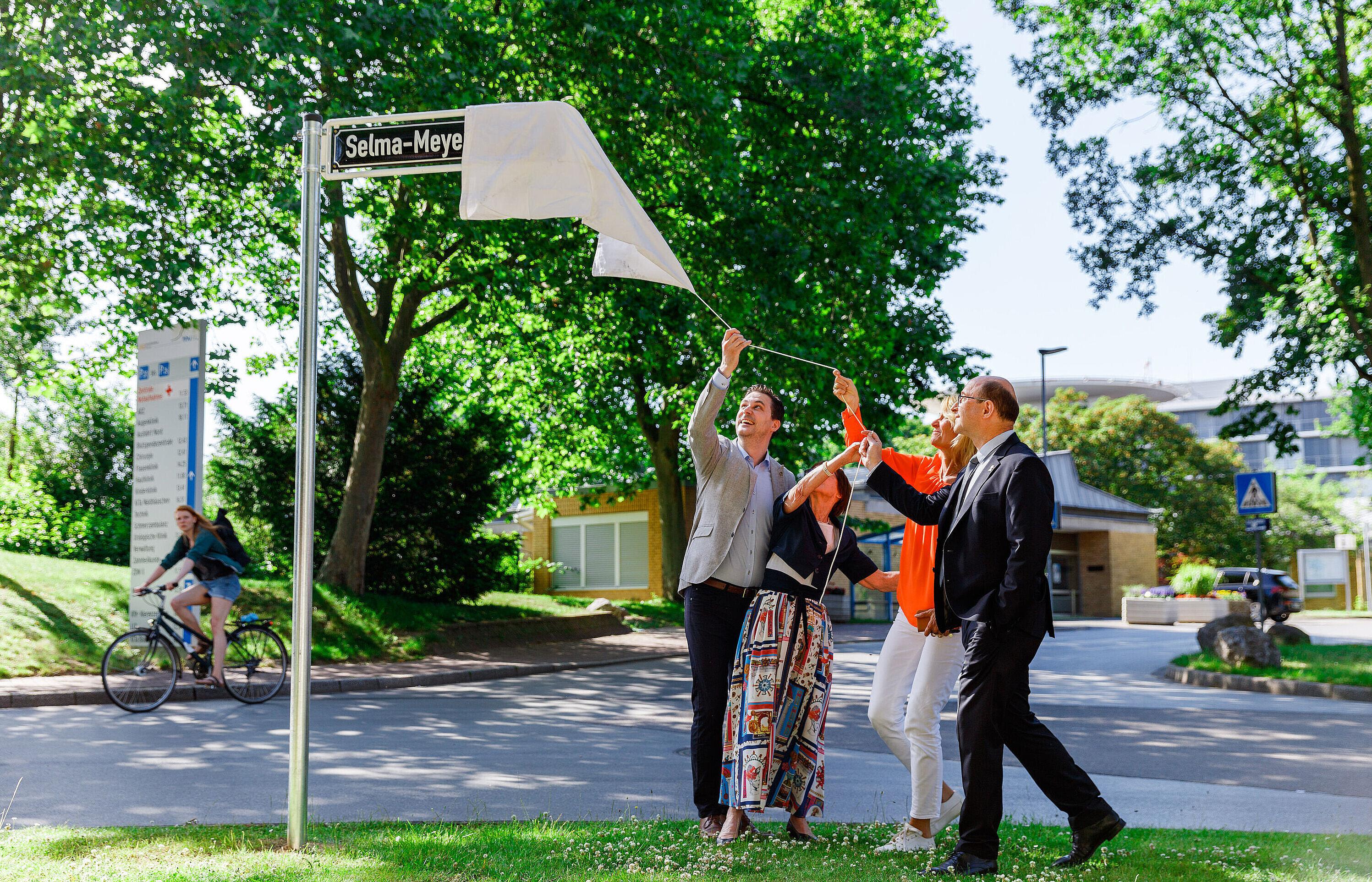 Zur feierlichen Enthüllung des neuen Straßenschildes kamen zahlreiche Gäste, die sich an den Lebensweg der mutigen Ärztin erinnerten. Selma Meyer habilitierte sich vor genau 100 Jahren an der Medizinischen Akademie Düsseldorf, der Vorläuferinstitution der Heinrich-Heine-Universität und des Universitätsklinikums Düsseldorf. Sie wurde dort leitende Oberärztin der Kinderinfektionsklinik und zur außerordentlichen Professorin ernannt. Mit ihrer Forschung zu Infektionskrankheiten wurde sie international bekannt und zu einer Pionierin der Immunbiologie. Sie hatte mit vielen Widerständen zu kämpfen, insbesondere mit Missgunst und Vorurteilen gegen sie als Frau und als Jüdin.