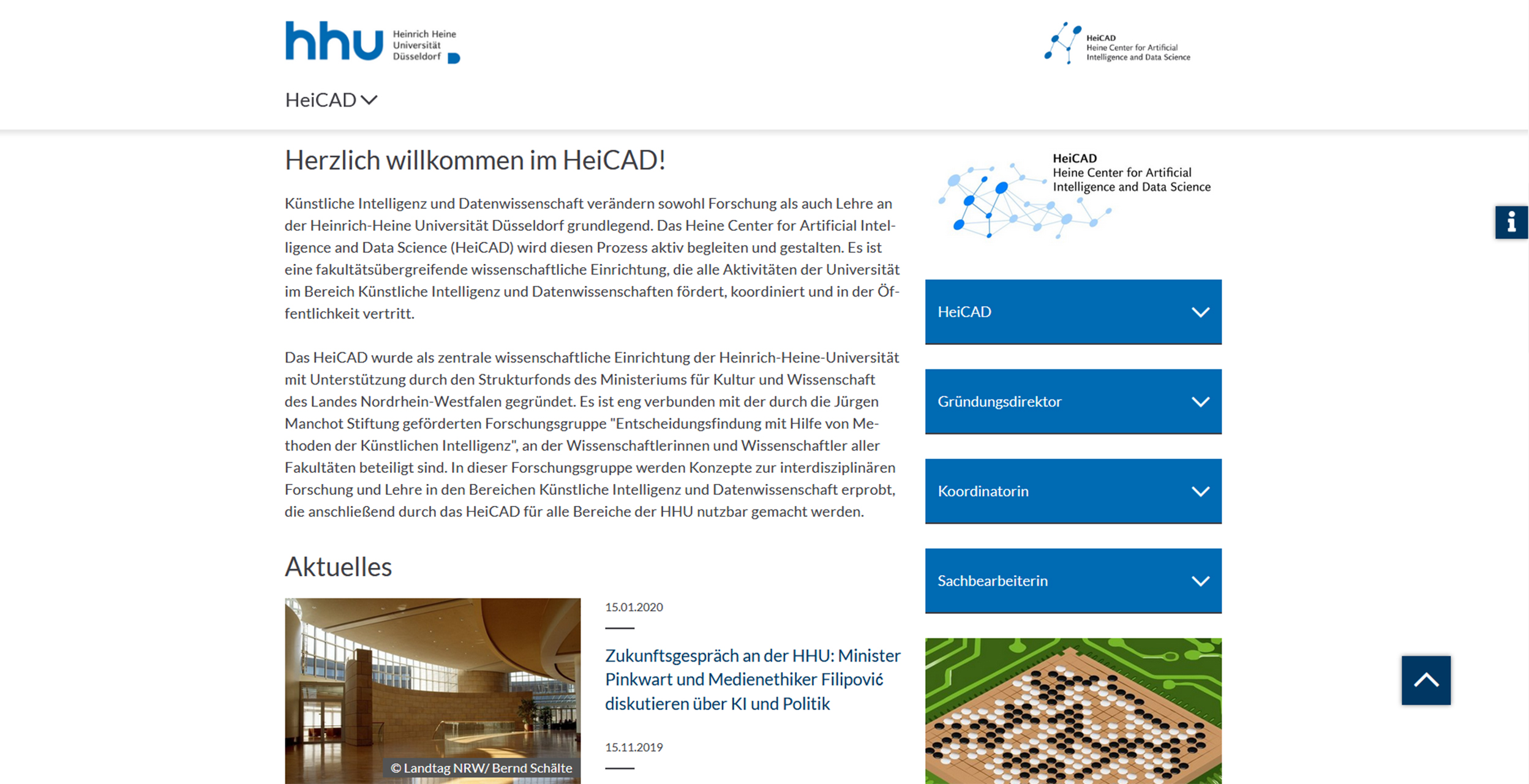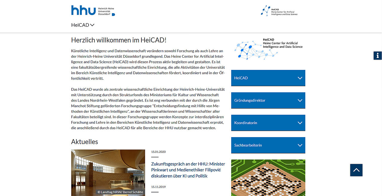 Seit dem 13. Januar können Interessierte sehen, wie die Webseiten der HHU künftig gestaltet werden: Charakteristisch sind großflächige Elemente und ein stärkerer Fokus auf Bilder. Viele Informationen lassen sich durch die klare Menüführung und die übersichtlichen Einstiegsseiten leichter finden. „Das neue Layout erlaubt es den Redakteuren, ihre Inhalte zielgruppengerecht und flexibel zu platzieren – innerhalb einer modernen Gestaltungslinie, die mit allen Beteiligten abgestimmt ist”, sagt Dorothea von Ruediger, Geschäftsführerin der betreuenden Agentur wiminno. „Der Launch der HeiCAD-Seite ist unsere Generalprobe für das Webkonzept unter Livebedingungen. Wir alle freuen uns darauf, wenn im nächsten großen Schritt die neu gestaltete HHU-Webseite online geht.“