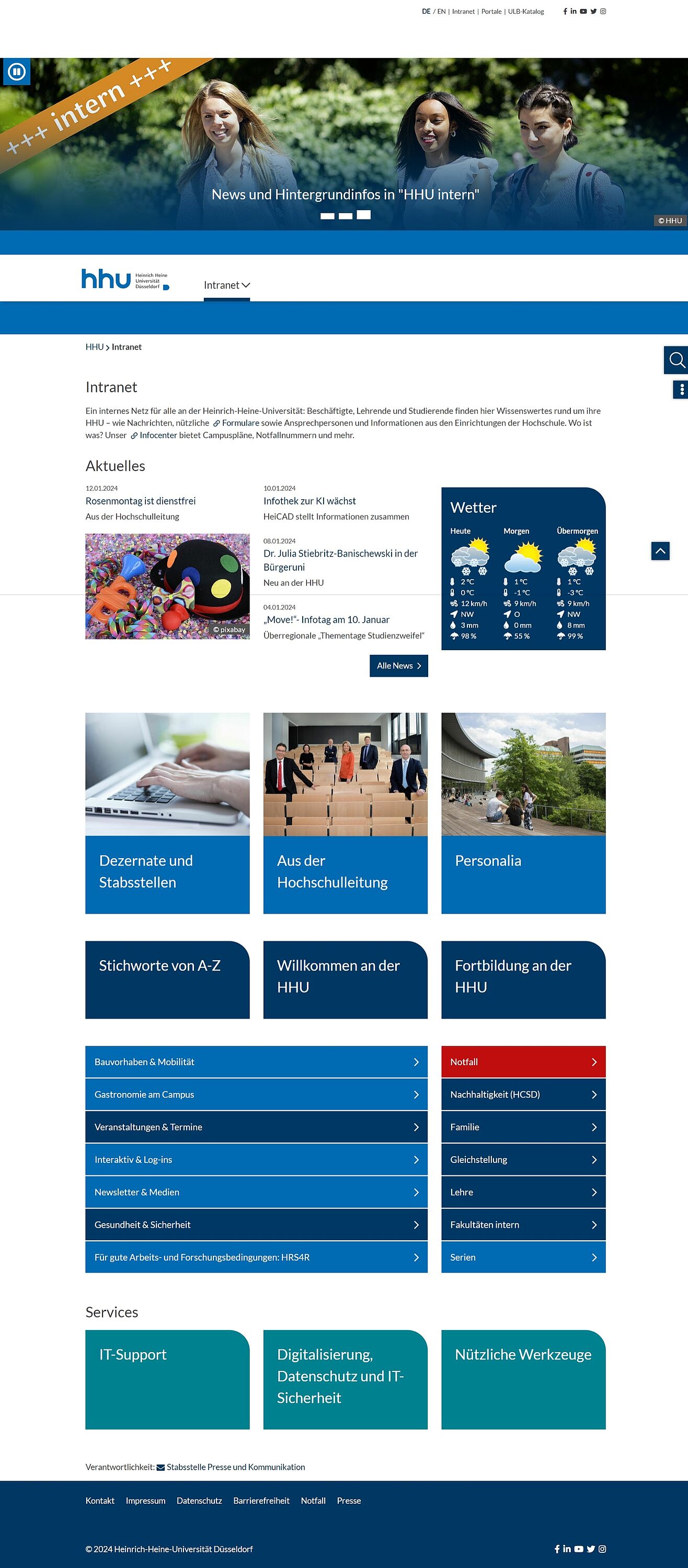 Um keine Neuigkeiten mehr zu verpassen, empfiehlt es sich https://www.intranet.hhu.de/ als Startseite im Browser einzustellen.