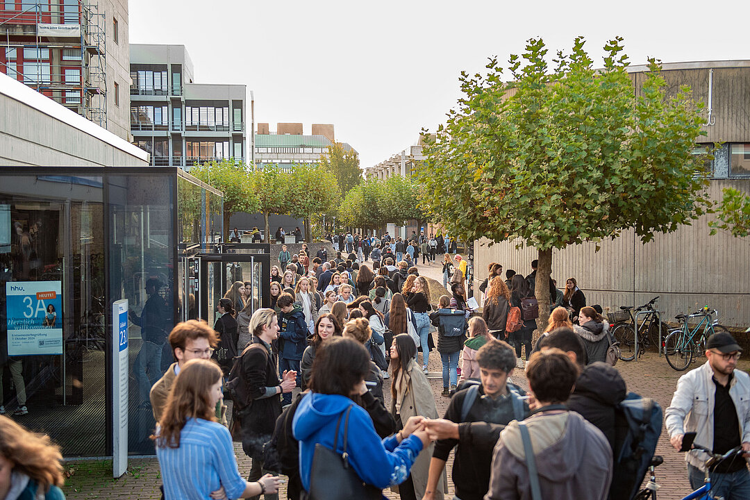 Professor Börner warb für die Teilnahme an der Erstsemesterbefragung, die voraussichtlich am 25. Oktober startet: „Uns interessiert besonders, wie Sie zu Ihrer Entscheidung für ein Studium an der HHU gekommen sind und welche Informationsquellen Ihnen dabei geholfen haben. Ihre Erfahrungen sind für uns von großer Bedeutung - sie helfen uns, unsere Angebote zu verbessern und die Ansprache zukünftiger Studierender zu optimieren.“