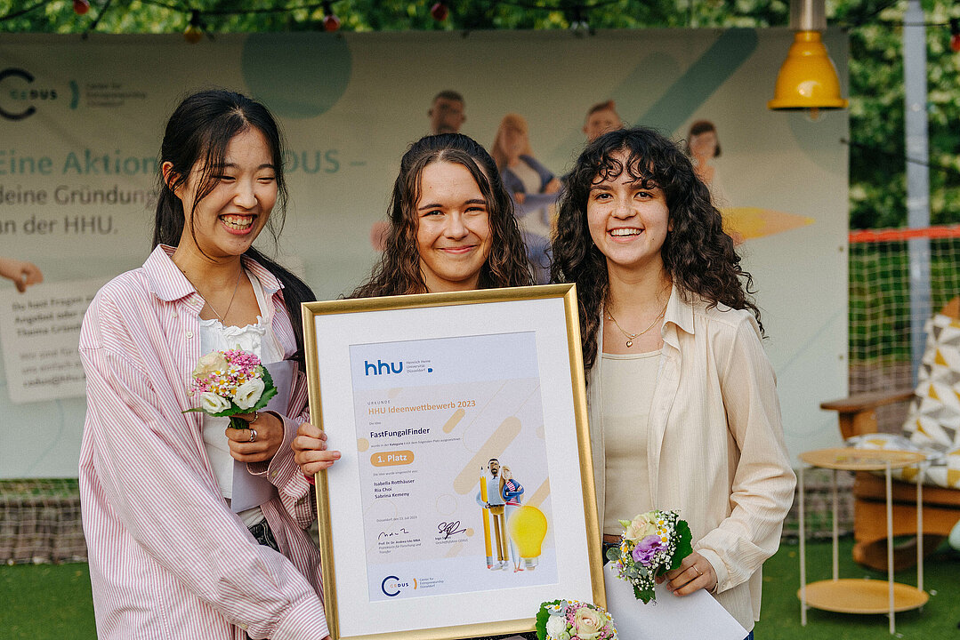 Zudem wurde erstmals der Sonderpreis Nachhaltigkeit des Heine-Center for Sustainable Development (HCSD) verliehen. Er soll dazu anregen, Forschungs- und Gründungsideen mit den Fragen der nachhaltigen Entwicklung zu verbinden. Die Forschergruppe von Fungilyzer konnte sich freuen: Zwei Mitglieder können auf Kosten des HCSD an der Jahrestagung des Rates für Nachhaltige Entwicklung (Beratungsgremium der Bundesregierung in Fragen der Nachhaltigkeit) im kommenden Oktober in Berlin teilnehmen und ihr Konzept vertreten.