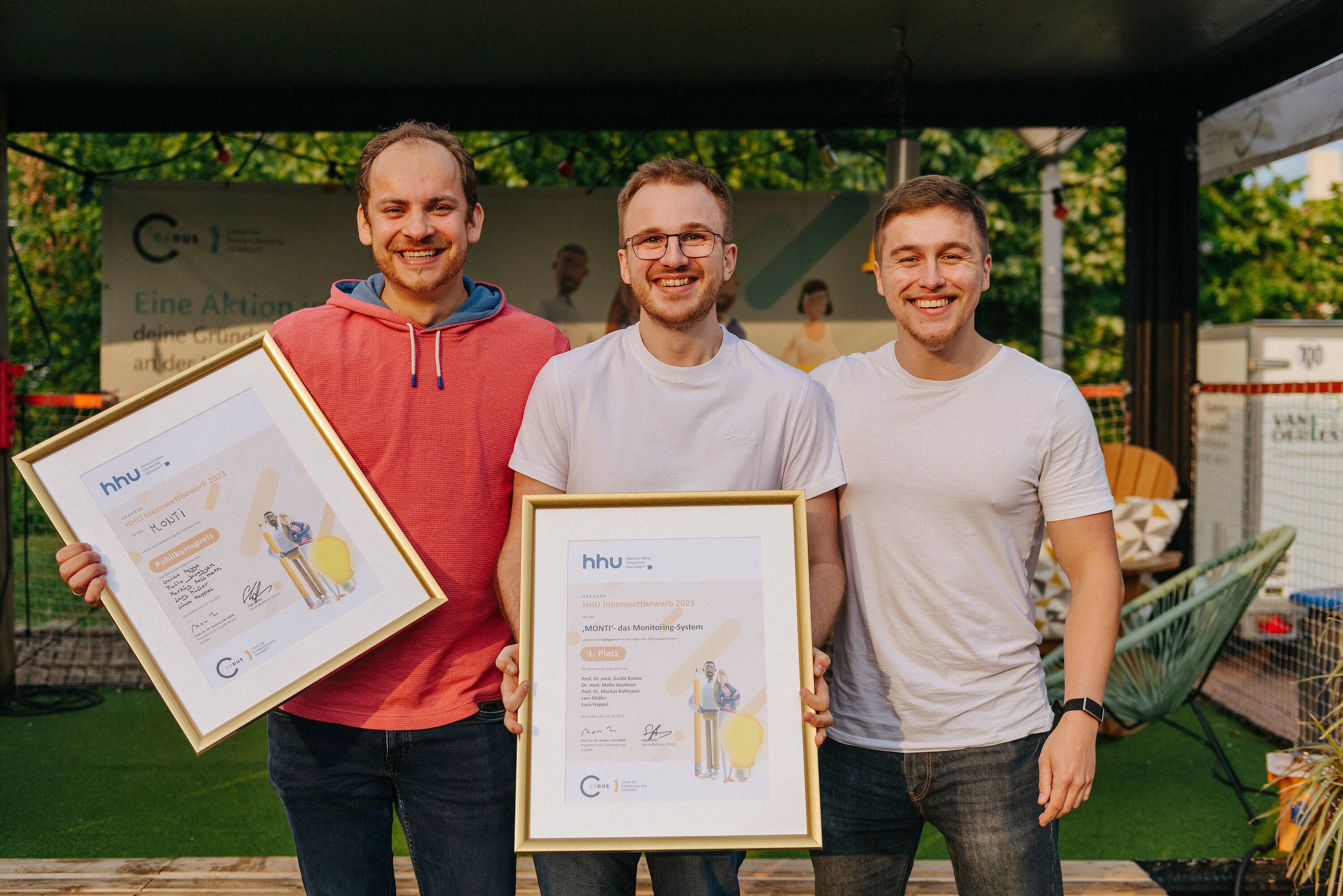 Den 1. Platz teilen sich „AneurysmAid“ und „MONTI - das Monitoring-System“. Hier bekommen beide Teams die ausgelobten 1.000 Euro. Platz 3 mit 300 Euro ging an „Cytokimera“.