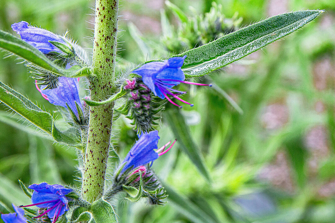 Auch beim Gewöhnlichen Natternkopf (Echium vulgare) sind die Blüten vormännlich. Griffel und Staubblätter dienen als Landeplatz für Bestäuber, sowohl für Schmetterlinge als auch für Hummeln, Honig- und Wildbienen. Der Name der Pflanze bezieht sich auf die Ähnlichkeit der Blüten mit einem Schlangenkopf; früher wurde deswegen der Pflanze auch eine Heilwirkung gegen Schlangenbisse nachgesagt.