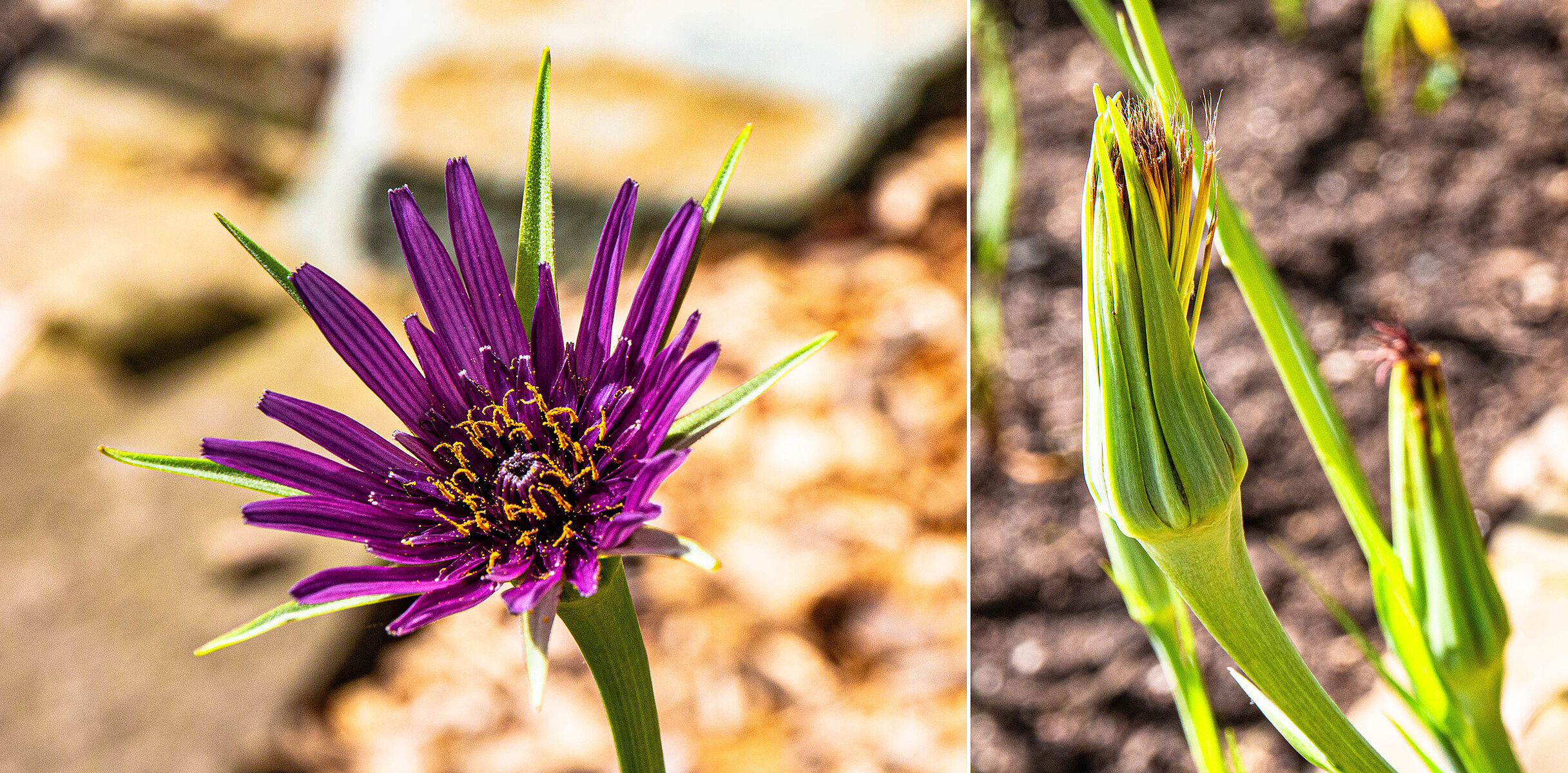 Bei der Haferwurzel (Tragopogon porrifolius) bestehen die Blütenköpfe aus einer Vielzahl (bis zu 50) einzelner Zungenblüten, die zu Köpfen zusammengefasst sind. Es gibt viele Blütenbesucher: Bienen, Falter, Schwebfliegen, Woll- und Hummelschweber – letztere schweben vor und über den Blüten wie kleine Kolibris.