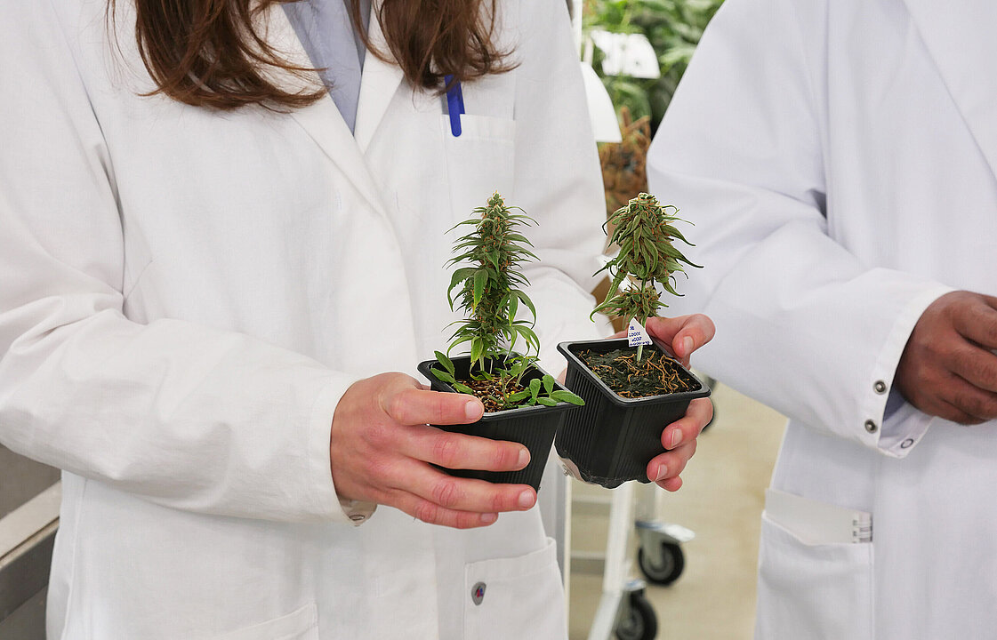 Erste Zuchterfolge: Cannabispflanzen im Forschungsgewächshaus