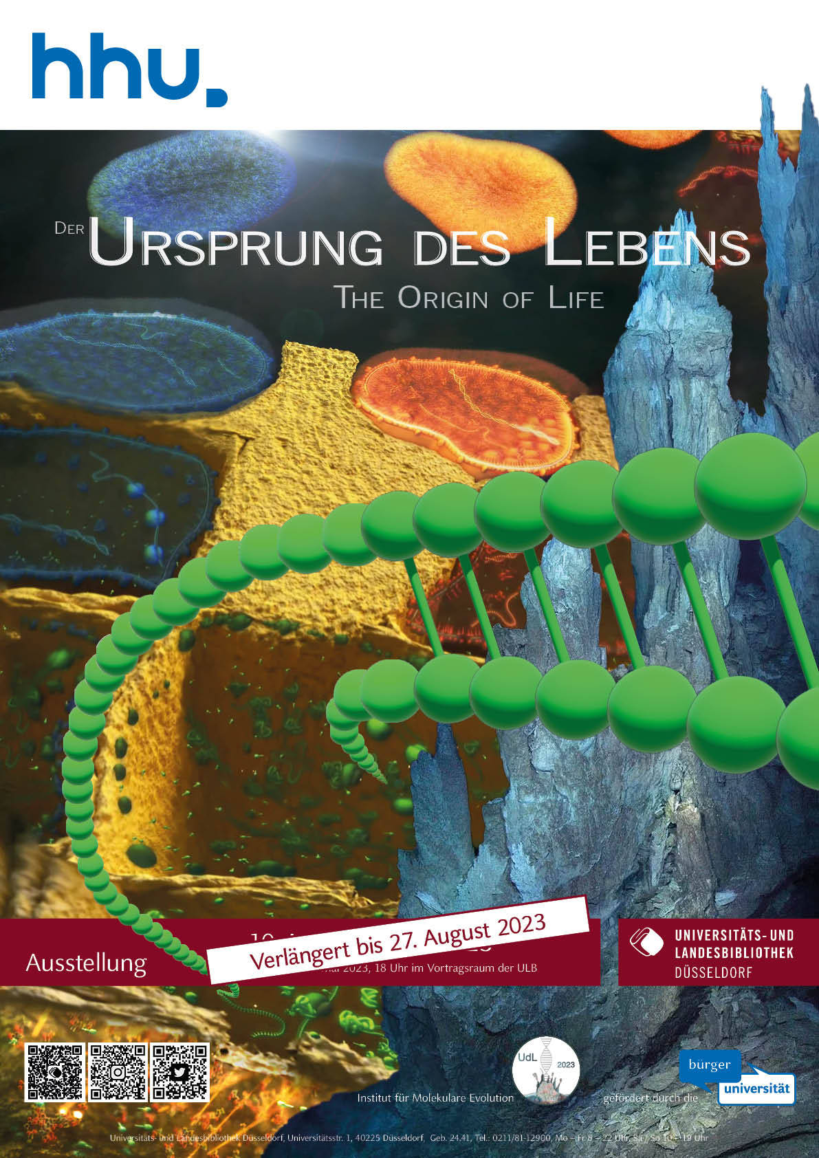 Die Ausstellung ist ein Projekt des Instituts für Molekulare Evolution der HHU in Zusammenarbeit mit der ULB. Sie wird durch die Bürgeruniversität gefördert.