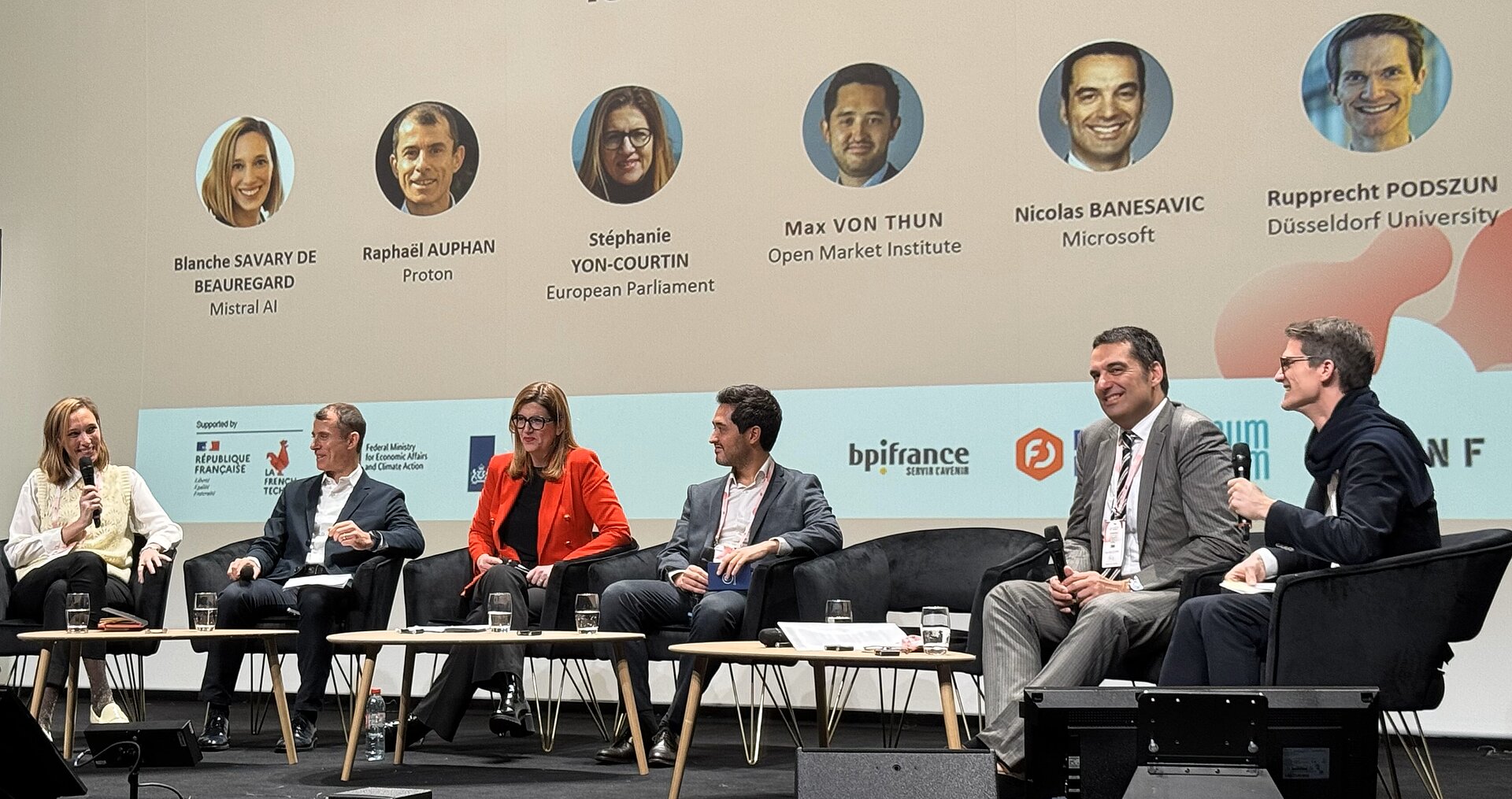 Professor Rupprecht Podszun und sein wissenschaftlicher Mitarbeiter Leon Wardelmann von der Heinrich-Heine-Universität Düsseldorf (HHU) nahmen an einer Nebenveranstaltung des großen Gipfels teil. Podszun leitete eine Podiumsdiskussion zur Rolle des Wettbewerbs für Innovationen im Bereich der KI. Zu den weiteren Diskutierenden gehörten: Raphael Auphan (COO von Proton), Nicholas Banasevic (Corporate Vice President von Microsoft), Blanche Savary de Beauregard (General Counsel von Mistral AI), Max von Thun vom Open Markets Institute und die Europaabgeordnete Stephanie Yon-Courtin. Die Teilnehmenden wurden vom französischen Wirtschaftsminister Eric Lombard begrüßt. Die Veranstaltung fand in der Station F, einem KI-Campus in Paris, statt. Auch Präsident Macron und OpenAI-Chef Sam Altman waren anwesend.