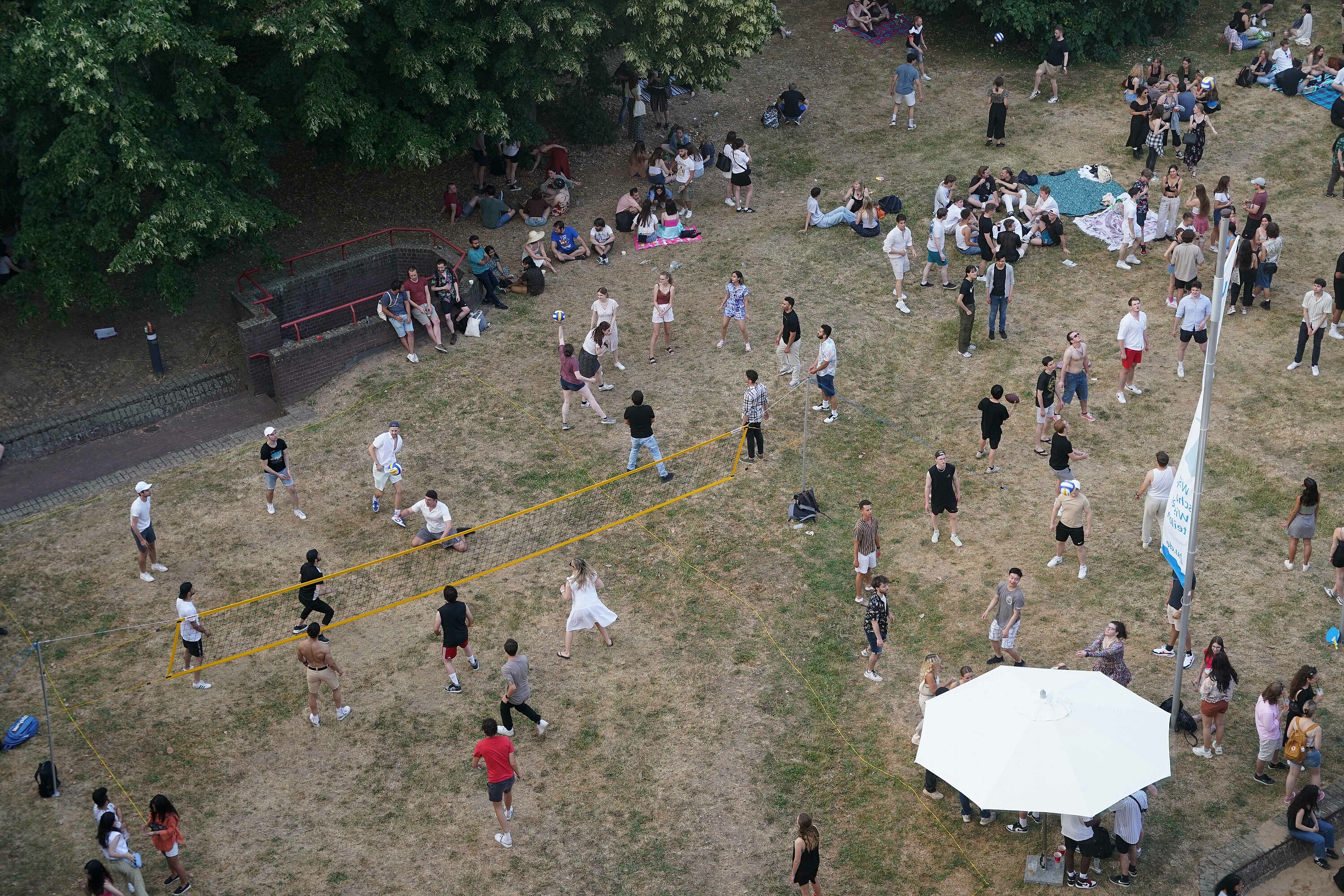 Campusluft genossen ebenfalls Geflüchtete und ihre Sprachbuddies, die in verschiedenen Projekten und Intensivdeutschkursen an der HHU zusammenarbeiten, um später ein Studium aufzunehmen. Kurzerhand ließ die Gruppe ihr Sommertreffen auf der Summerbeachparty ausklingen, die am Abend durch bunte Lichter eine funkelnde Verzauberung erlebte.
