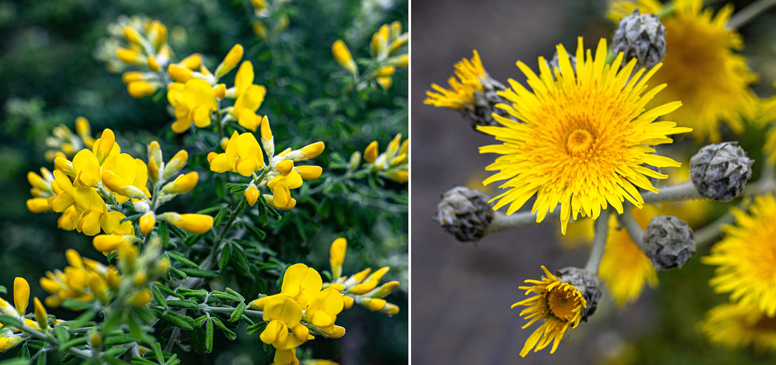 Wer beim Besuch des Botanischen Gartens der HHU von einem Regenschauer überrascht wird, dem sei ein Blick ins Kuppelgewächshaus empfohlen. Denn auch dort beginnen die Pflanzen zu blühen, aktuell dominiert die Farbe Gelb, zu sehen am Kanaren-Ginster (Genista canariensis) und der Stengellosen Gänsedistel (Sonchus acaulis).
