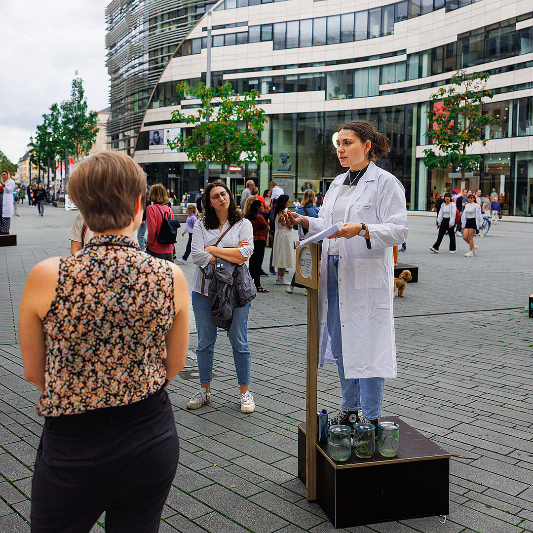 Angelehnt an das berühmte Londoner „Speaker’s Corner“-Format, erklären seit 2011 Forscherinnen weltweit – und seit 2020 im Rheinland – auf leicht verständliche und anschauliche Weise – und ohne technische Hilfsmittel – ihre Arbeit. Sie stellen sich auch der Diskussion mit den Zuhörenden.
