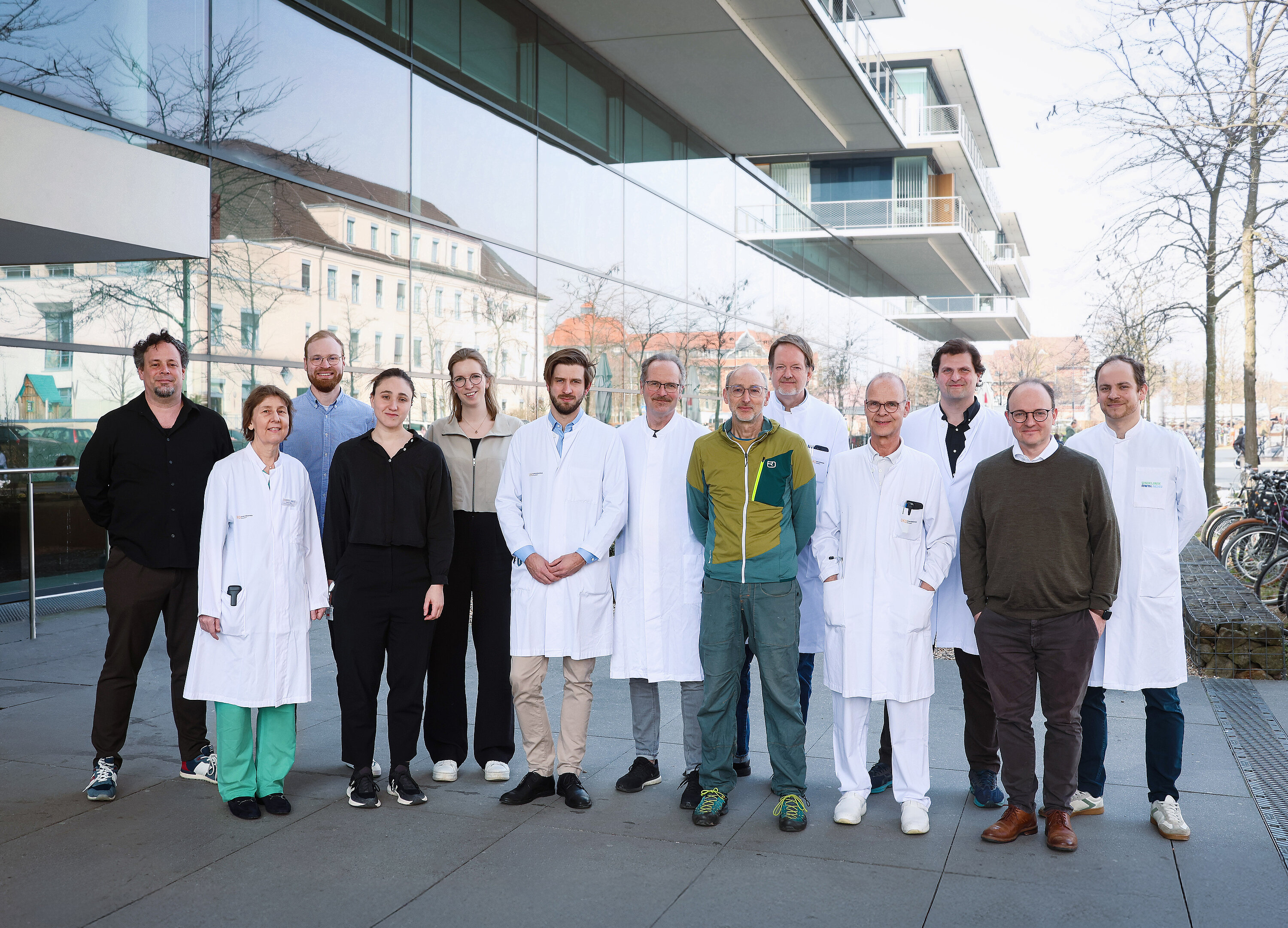 Das Forschungsteam der MOTIVATE-Studie (v.l.n.r.): Boris Kroeber-Irmscher (DigitalTwin GmbH), Prof. Dr. Tanja Fehm, Steffen Holsteg, Prof. Dr. Nora-Tabea Sibert, Dr. Miriam Dodegge, Dr. Fabian Voss, Dr. André Karger, Prof. Dr. Markus Kollmann, Prof. Dr. Guido Kobbe, Prof. Dr. Malte Kelm, Prof. Dr. Armin Polzin, Prof. Dr. Sascha Dietrich, Dr. Malte Jacobsen (UK Aachen).