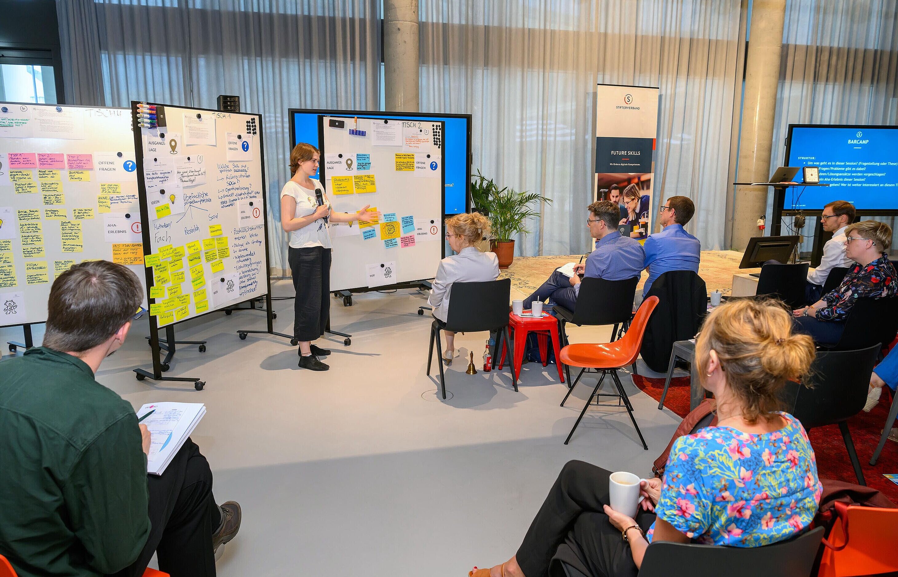Wie? Mit den Methoden des Design Thinking und agilen Arbeitsweisen werden gemeinsam mit Fachleuten Wissenschaft, Wirtschaft und dem Stifterverband neue Module konzipiert und bestehende weiterentwickelt. Bis Mai 2024 sollen so alle geförderten Hochschulen ihr individuelles Curriculum konzipieren.
