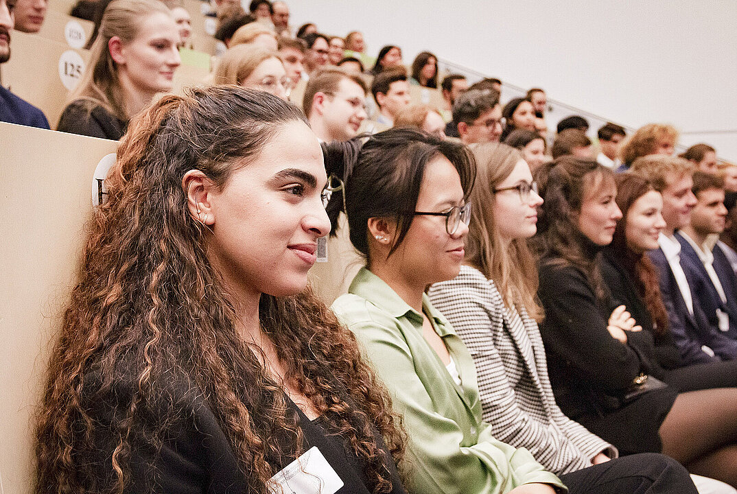 Nach dem offiziellen Teil im Hörsaal tauschten sich die geförderten Studierenden mit ihren Stiftern und Stifterinnen über zukünftige berufliche Perspektiven und Ideen rund um das Deutschlandstipendium aus.