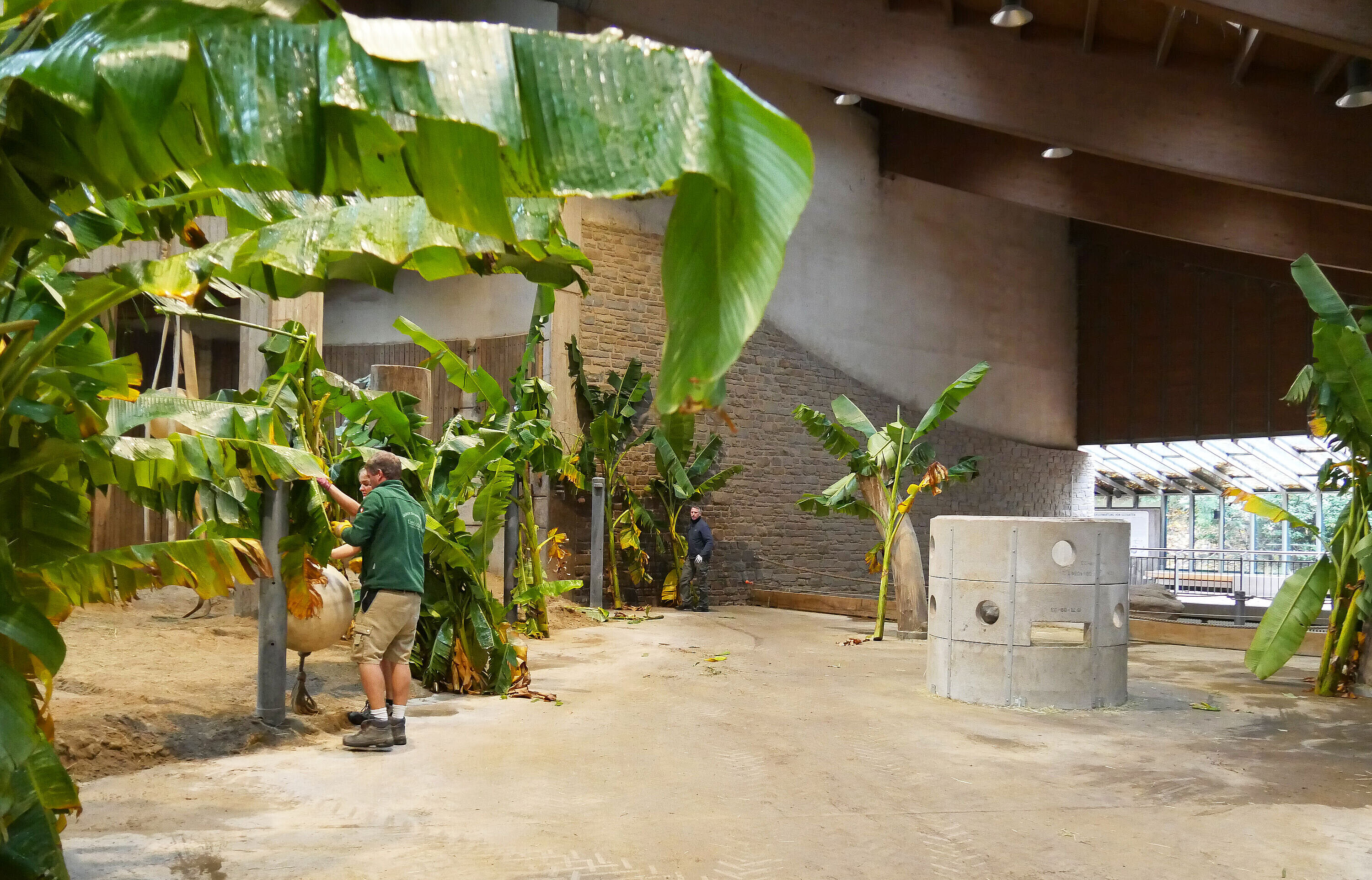 „Die Elefanten freuen sich immer wieder über die Bananenblätter. Die sind eine großartige Variation im Speiseplan.“ „Es ist jedes Mal ein Highlight sowohl für uns als auch für die Elefanten“, so die Stimmen aus dem Tierpflegeteam in Wuppertal.