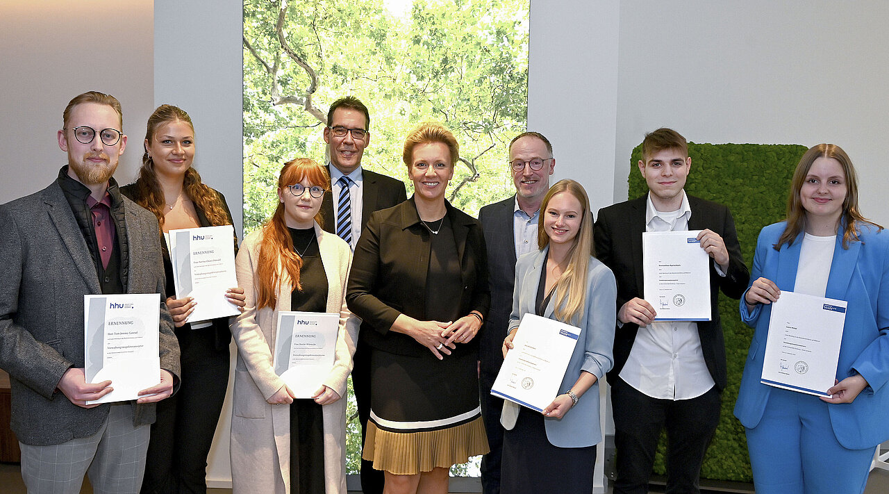 Die drei ersten Anwärterinnen und Anwärter an der HHU – Tom Jeremy Conrad, Norina Chiara Ostwald und Denise Wienecke – wurden ebenso herzlich begrüßt wie Jana Kirschstein, Konstantinos Mpairarchtaris und Laura Nickel von der Universität Duisburg-Essen (UDE). An ihrem ersten Tag im ersten Ausbildungsjahr begegneten sie UDE-Kanzler Jens Andreas Meinen, HHU-Kanzler Dr. Martin Goch, Ausbildungsleiterin Julia Ulrichs und Martin Pfitzer, Abteilungsleiter Personal in Technik und Verwaltung an der HHU.