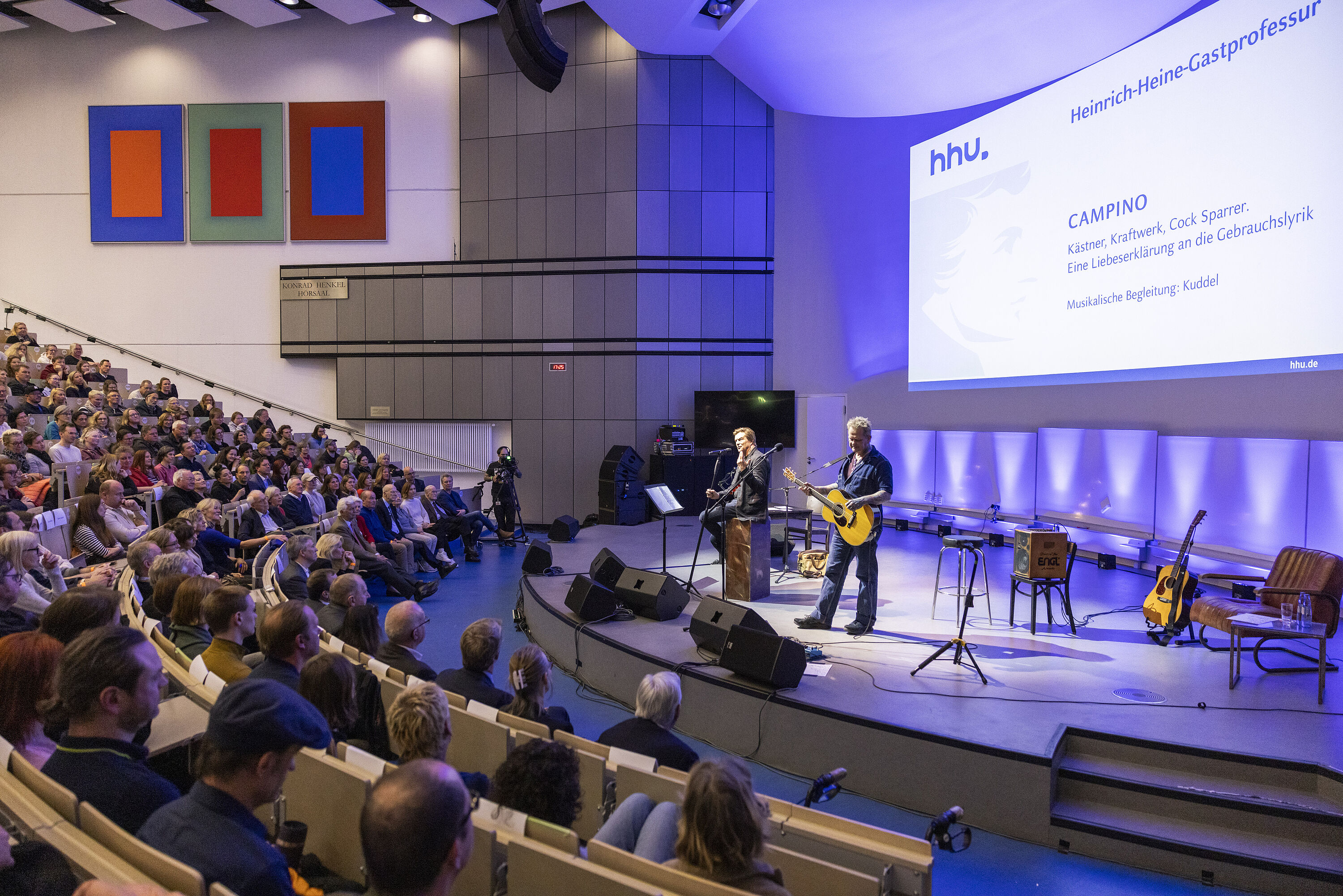 Holte sich die HHU mit Campino einen Systemgegner ins Haus? „Einen Gegner nicht, eher einen Kritiker,“ so Rektorin Prof. Dr. Anja Steinbeck, die auf Heinrich Heine verwies: „Wenn man an unseren Namenspatron denkt, der auch aus Düsseldorf kommt und sich mit spitzer Feder gegen das Establishment gestellt hat, dann ist die Wahl doch eigentlich sehr schlüssig.“