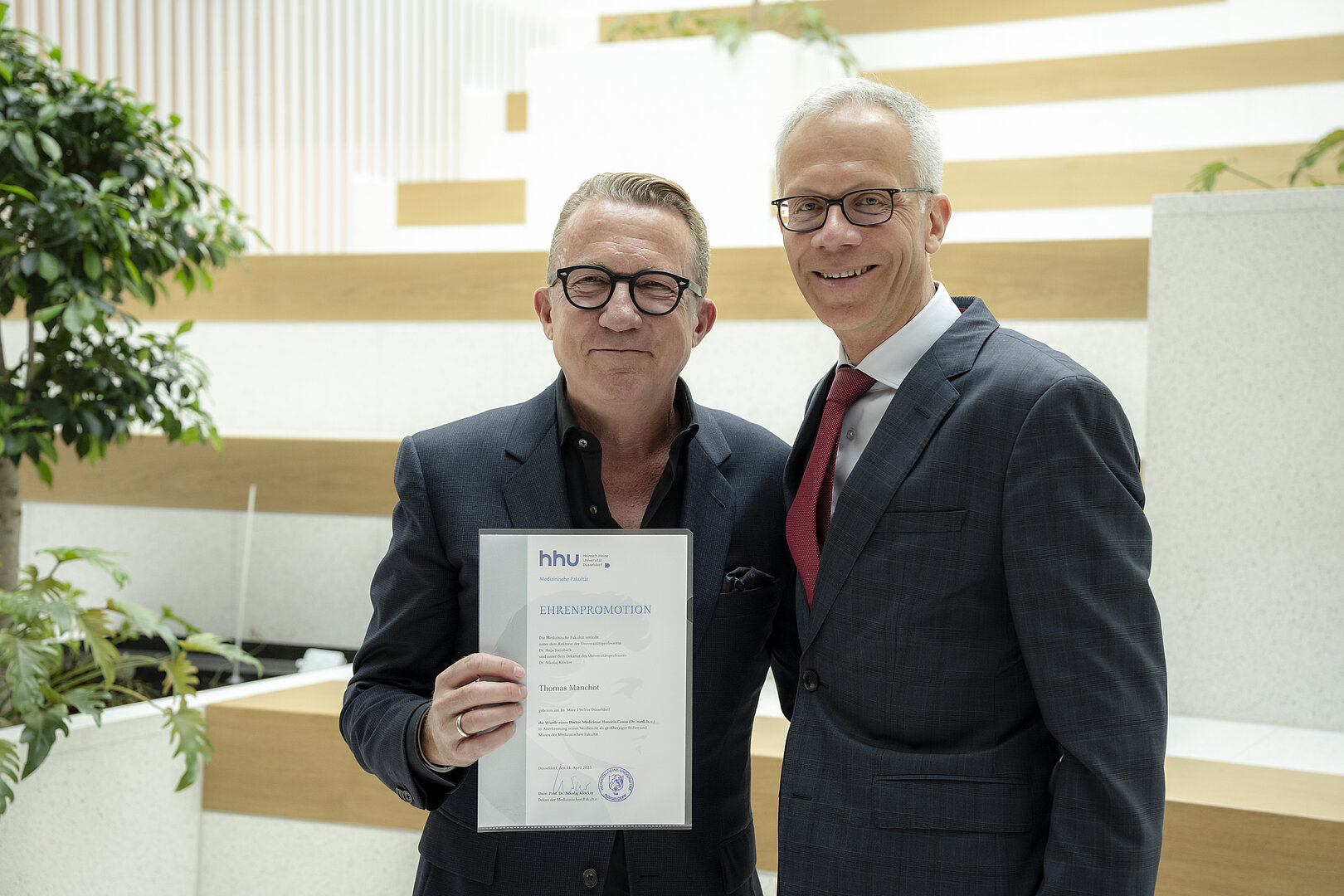 Die bislang letzte Verleihung einer Ehrendoktorwürde durch die Medizinische Fakultät erfolgte im Jahr 2008 an den Stifter und Ehrensenator der HHU Dr. Dr. h.c. Günther Wille (1922 - 2018). Dekan Prof. Klöcker sagte abschließend an den neuen Ehrendoktor Thomas Manchot gerichtet: „Sie machen die Welt zu einem besseren Ort – etwas, das sie gerade in dieser Zeit sehr nötig hat.“