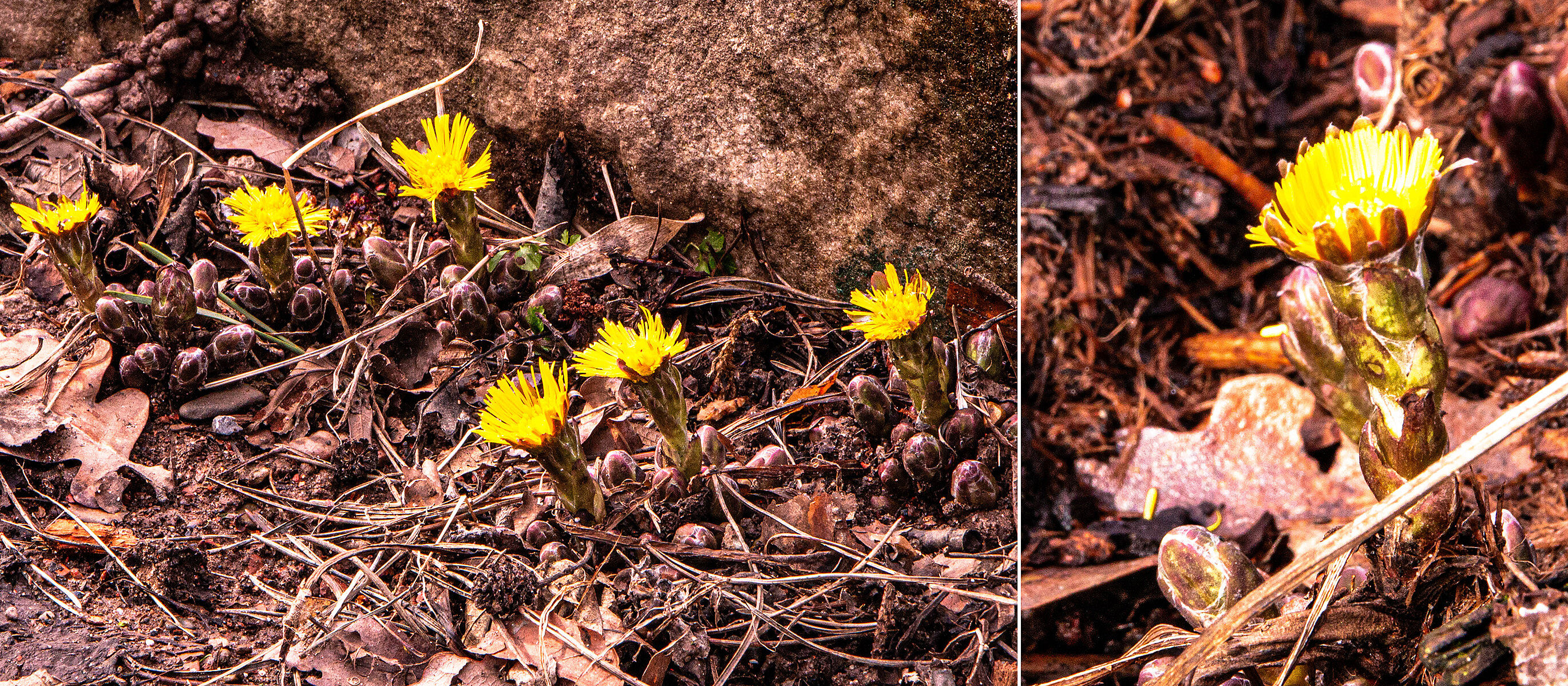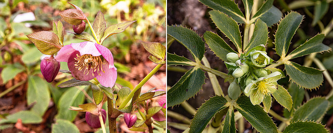 Der Frühling kündigt sich an im Botanischen Garten der HHU. An vielen Stellen schaut schon der lilafarbene Dalmatiner Krokus (Crocus tommasinianus) aus der Erde und auch der sonnengelbe Huflattich (Tussilago farfara) ist zu finden. Gelb blüht ebenfalls die Japanische Zaubernuss (Hamamelis japonica). An verschiedenen Stellen im Außengelände blühen mehrere Arten der Nieswurz, zartlila die Orientalische Nieswurz (Helleborus orientalis), grünlich-weiß die Korsische Nieswurz (Helleborus argutifolius).