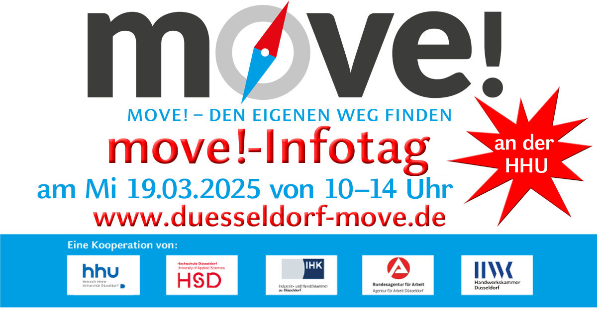 Vom 10. bis 28. März bieten rund 30 Hochschulen in NRW ein vielfältiges Programm, das speziell auf Studierende mit Studienzweifeln zugeschnitten ist. In mehr als 40 überwiegend digitalen Veranstaltungen – darunter Vorträge und Workshops – können sich Interessierte zu Themen wie Fach- und Hochschulwechsel, Ausbildungsalternativen, alternative Karrierewege, Berufsorientierung und Entscheidungsfindung umfassend informieren. Mit dabei auch die Heinrich-Heine-Universität Düsseldorf (HHU), die am 19. März den „move!“ – Infotag ausrichtet. Und am 25. März geben ehemalige Studienzweiflerinnen in dem Format: „Zweifellos - Erfahrungsberichte zum Thema Studienzweifel“ hilfreiche Impulse.