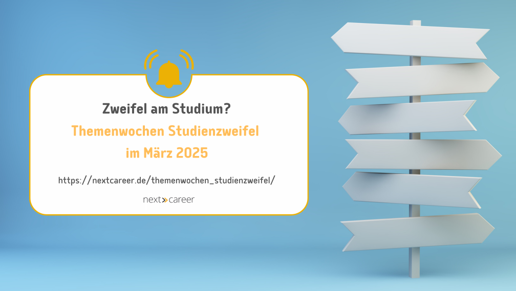 Das Programm ist kostenfrei und steht allen Interessierten offen. Einige Veranstaltungen erfordern eine vorherige Anmeldung. Weitere Informationen sowie das vollständige Programm hier: nextcareer.de/themenwochen_studienzweifel/ sowie auf den Homepages der teilnehmenden Projekte und Hochschulen.