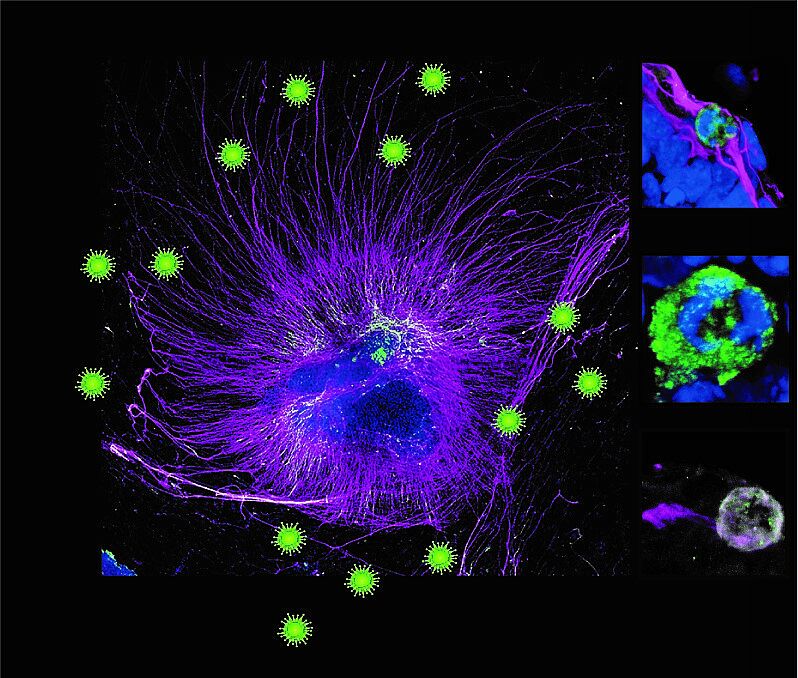 Zudem co-lokalisiert das Virus überraschenderweise mit dem krankheitsrelevanten TAU Protein, ein Indiz für frühe neuro-degenerative Effekte von SARS-CoV-2-positiven Nervenzellen. Die Studien liefern erste Einsichten in die Wirkung des Virus als ein neurotropisches Virus und zeigen zudem, dass Hirn-Organoiden als Modell für Erkrankungen des ZNS auch bei COVID-19 dienen können.
