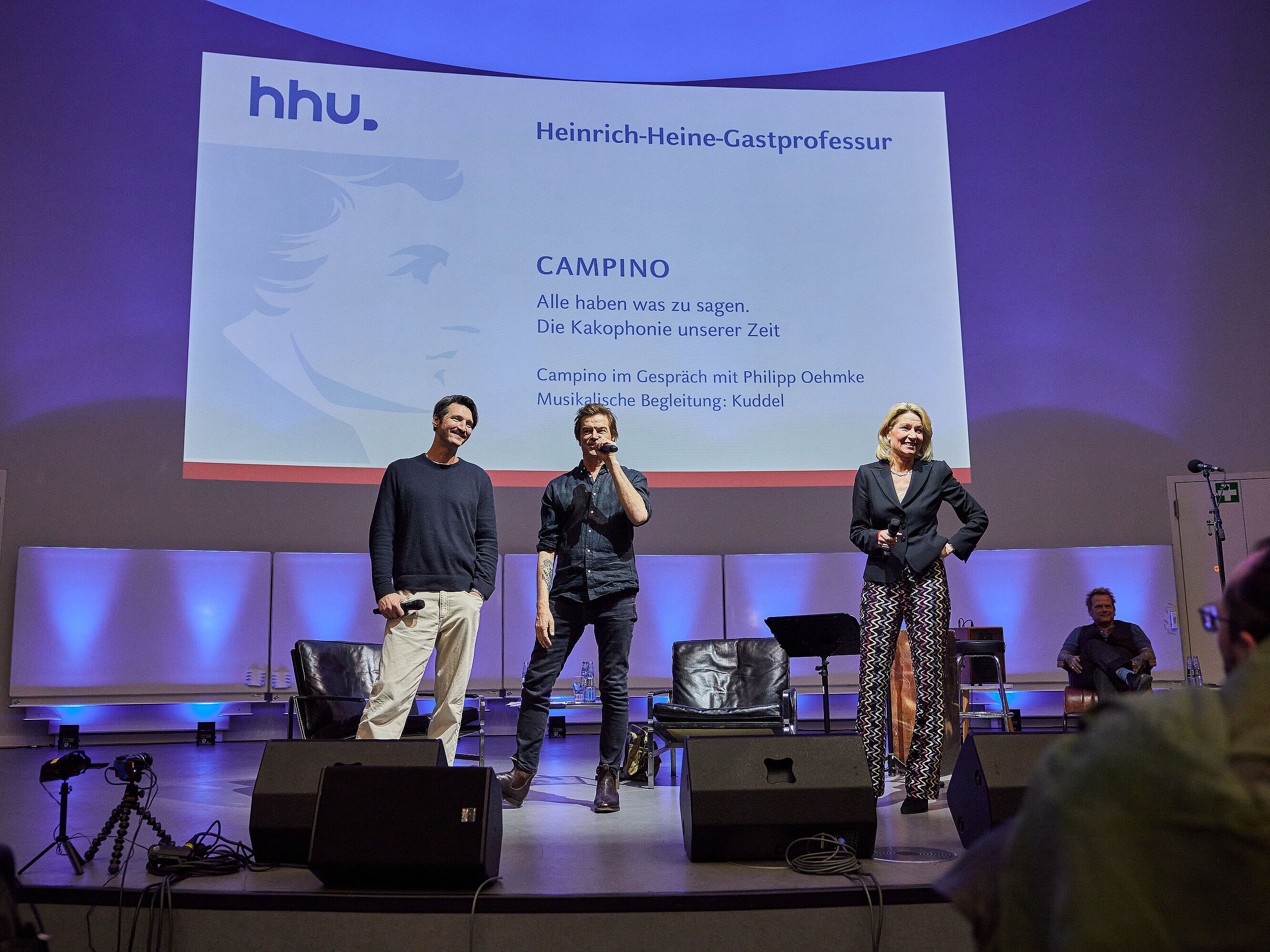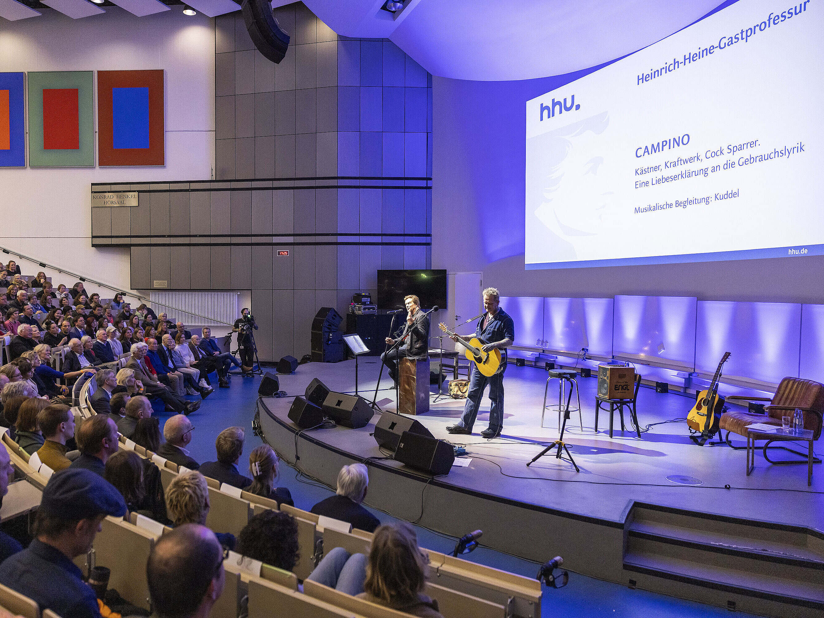 Bekannt geworden ist Campino als Düsseldorfer Punkrock-Legende und Frontmann der Band „Die Toten Hosen“. Doch Campino ist mehr als das: Er ist politisch und sozial engagiert. Er war als Schauspieler und Schriftsteller sowie journalistisch tätig. Als einer der erfolgreichsten Songwriter Deutschlands hat er seine Affinität zu lyrischen Texten mehr als nur unter Beweis gestellt. Diese Leidenschaft für Literatur und Kommunikation brachte Campino für zwei Vorlesungen an die Heinrich-Heine-Universität Düsseldorf.