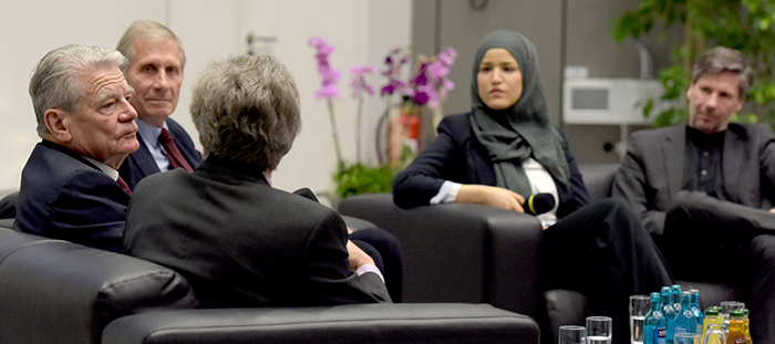 Teilnehmer: Bundespräsident a.D. Joachim Gauck, Ouassima Laabich, Prof. Dr. Reinhard Pietrowsky, Prof. Dr. Ulrich Rosar