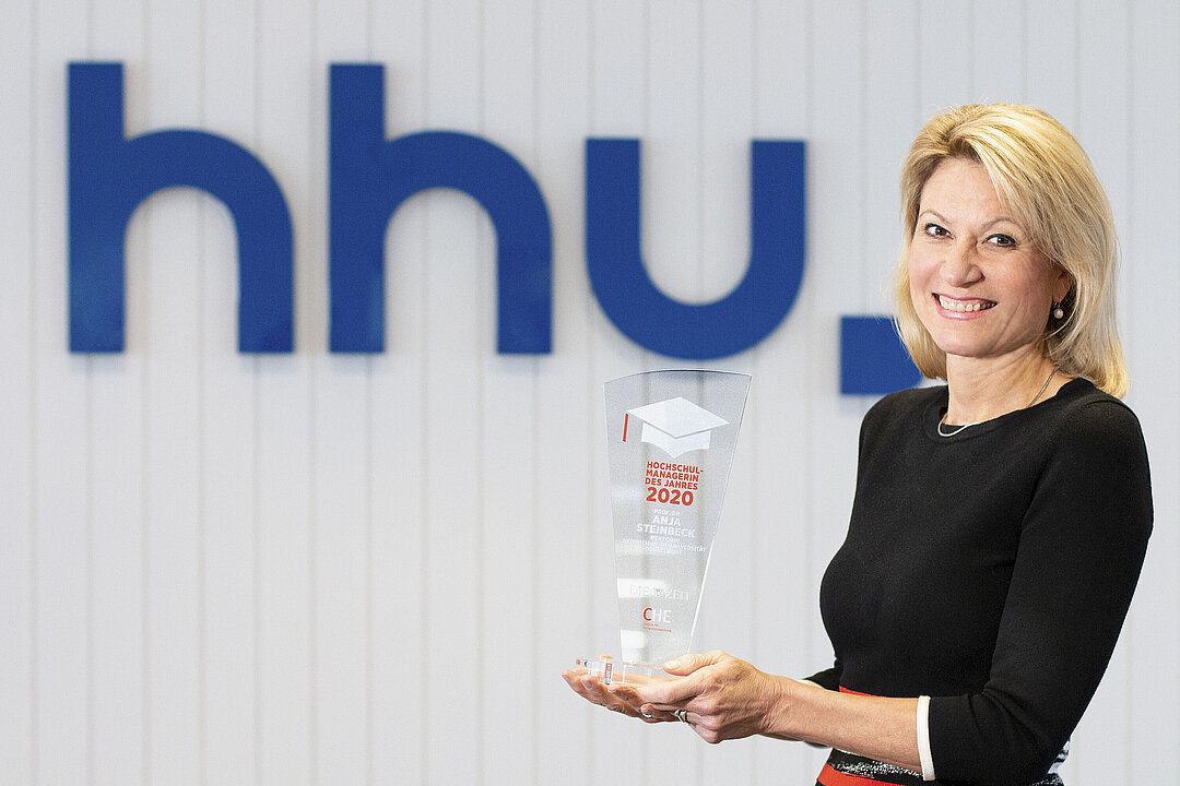 The honour was bestowed on the “University Manager of the Year” in recognition of her great service to HHU since she took up her role in November 2014 and of her solid management of the coronavirus crisis. The title is Germany’s most significant distinction in the field of university management and was awarded based on the decision of a highly respected jury. The jury members include former Federal Minister for Research Prof. Dr. Johanna Wanka, Head of the “Wissen” (Knowledge) section of Die Zeit newspaper Manuel J. Hartung and CHE CEO Prof. Dr. Frank Ziegele.
