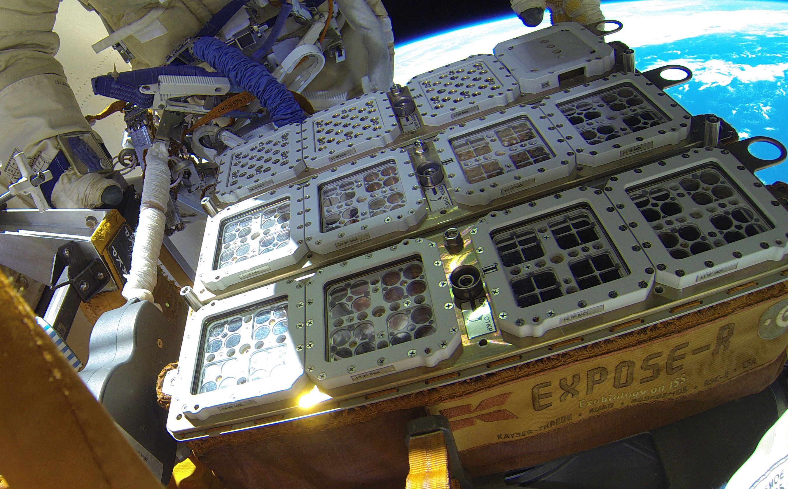Caption: The EXPOSE-R exposure experiment in the process of be-ing assembled on the Zvezda module of the International Space Sta-tion (ISS). Alongside other samples, lichen samples from HHU were exposed to space conditions for a total of 480 days. (Picture: ESA/ROSCOSMOS)