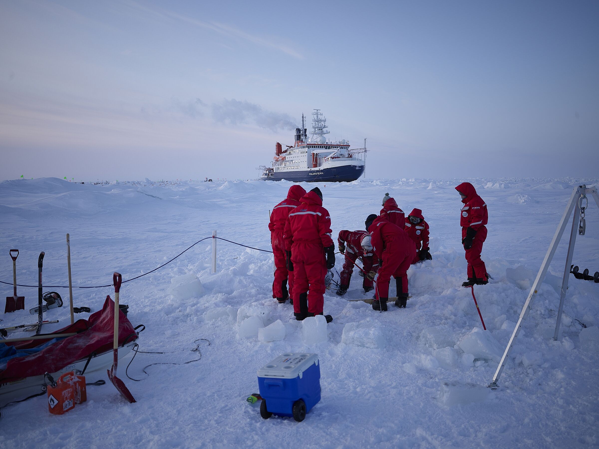 From September 2019, the German research icebreaker Polarstern spent a year drifting across the central Arctic frozen into the sea ice. This MOSAiC mission („Multidisciplinary drifting Observatory for the Study of Arctic Climate“) was the largest Arctic expedition in history and was led by the Alfred Wegener Institute, Helmholtz Centre for Polar and Marine Research (AWI). Hundreds of scientists conducted a range of marine, atmospheric and sea ice-related research and collected samples to gain a better understanding of the role of the Arctic Ocean and its ecosystems in climate processes and improve current climate models.