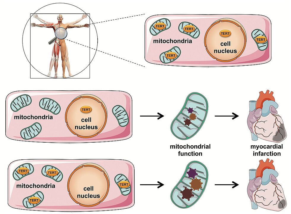 Based on these findings, therapies that increase the amount of TERT in mitochondria appear to be useful in achieving a better healing process after a heart attack. Such an effect occurred in heart tissue of bypass patients after a pressure cuff therapy during which a conventional blood pressure cuff placed on the patient's upper arm is inflated several times in a specific rhythm, which improves mitochondrial functions. First cell culture experiments indicate that an increase in mitochondrial TERT levels can also be achieved by using a plant substance approved as a dietary supplement.