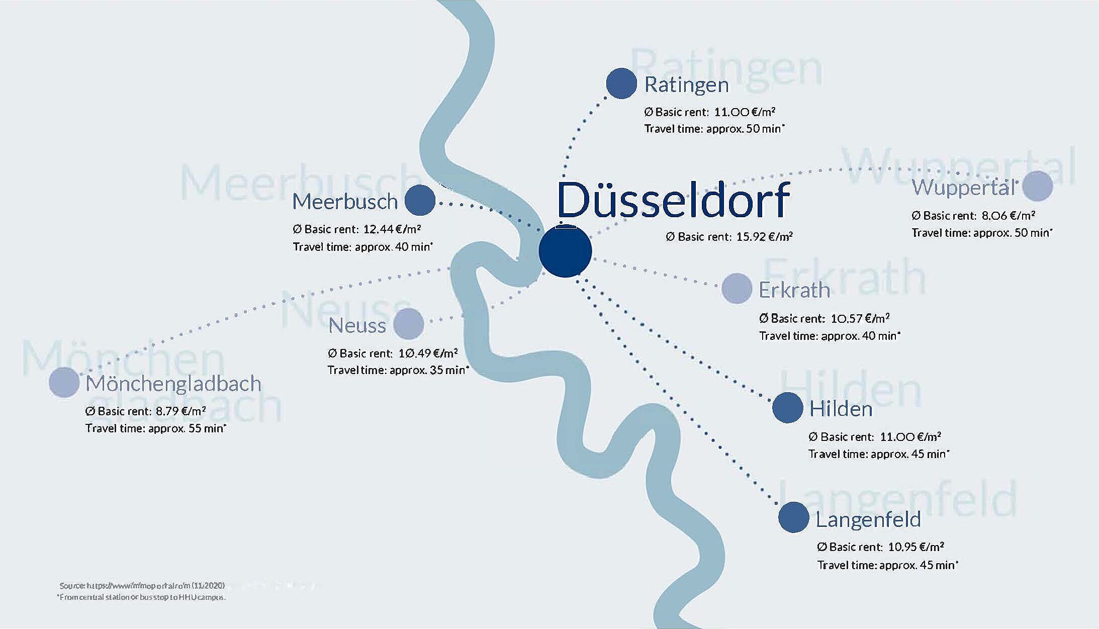 In addition, you will find information on different districts in Düsseldorf and their location in respect to the university.