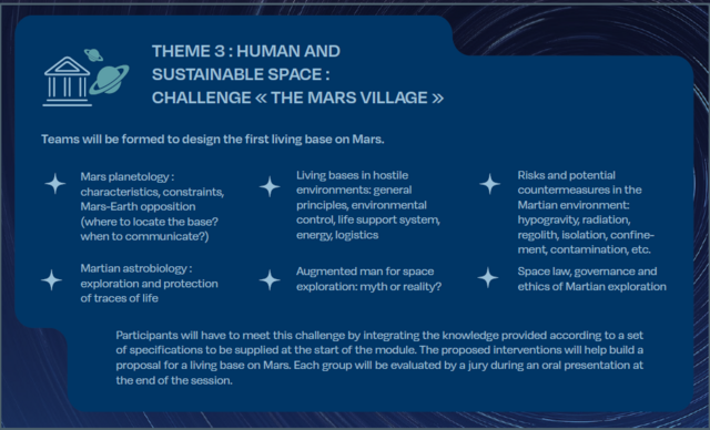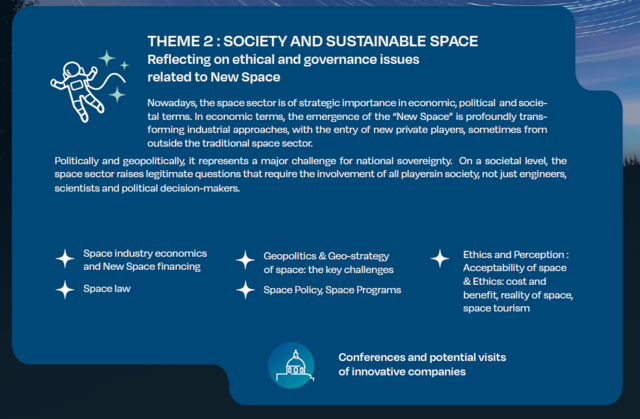 • Human and sustainable space: Addressing the challenges of human resilience in space exploration.