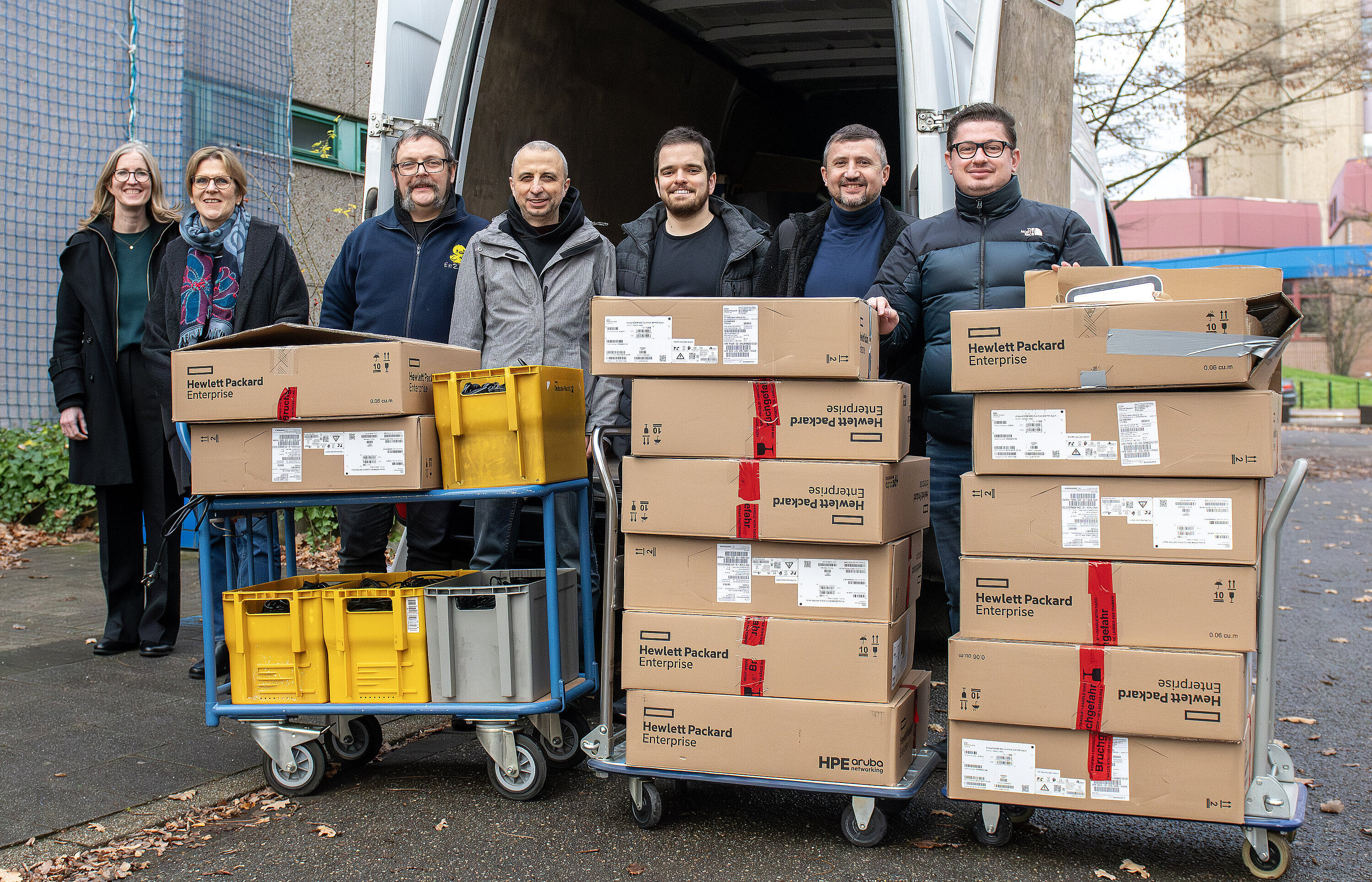 Auch die Heinrich-Heine-Universität Düsseldorf unterstützt ihre Partneruniversität in Czernowitz ganz konkret: Aus dem IT-Bestand der HHU werden 48 professionell einsetzbare Netzwerk-Switches sowie 110 PCs an die Nationale Jurij-Fedkowytsch-Universität Czernowitz gespendet. Die Geräte sollen vor Ort helfen, die digitale Infrastruktur in Lehre und Verwaltung weiter auszubauen – etwa beim Aufbau stabiler Campusnetze, in PC-Pools oder in zentralen Verwaltungsbereichen.
