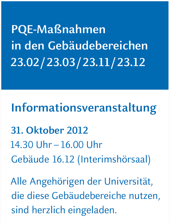 * Informationsveranstaltung des BLB NRW zu den Primärquellenentfernungs-Maßnahmen PCB in den HHU Gebäudebereichen 23.02, 23.03, 23.11 und 23.12.