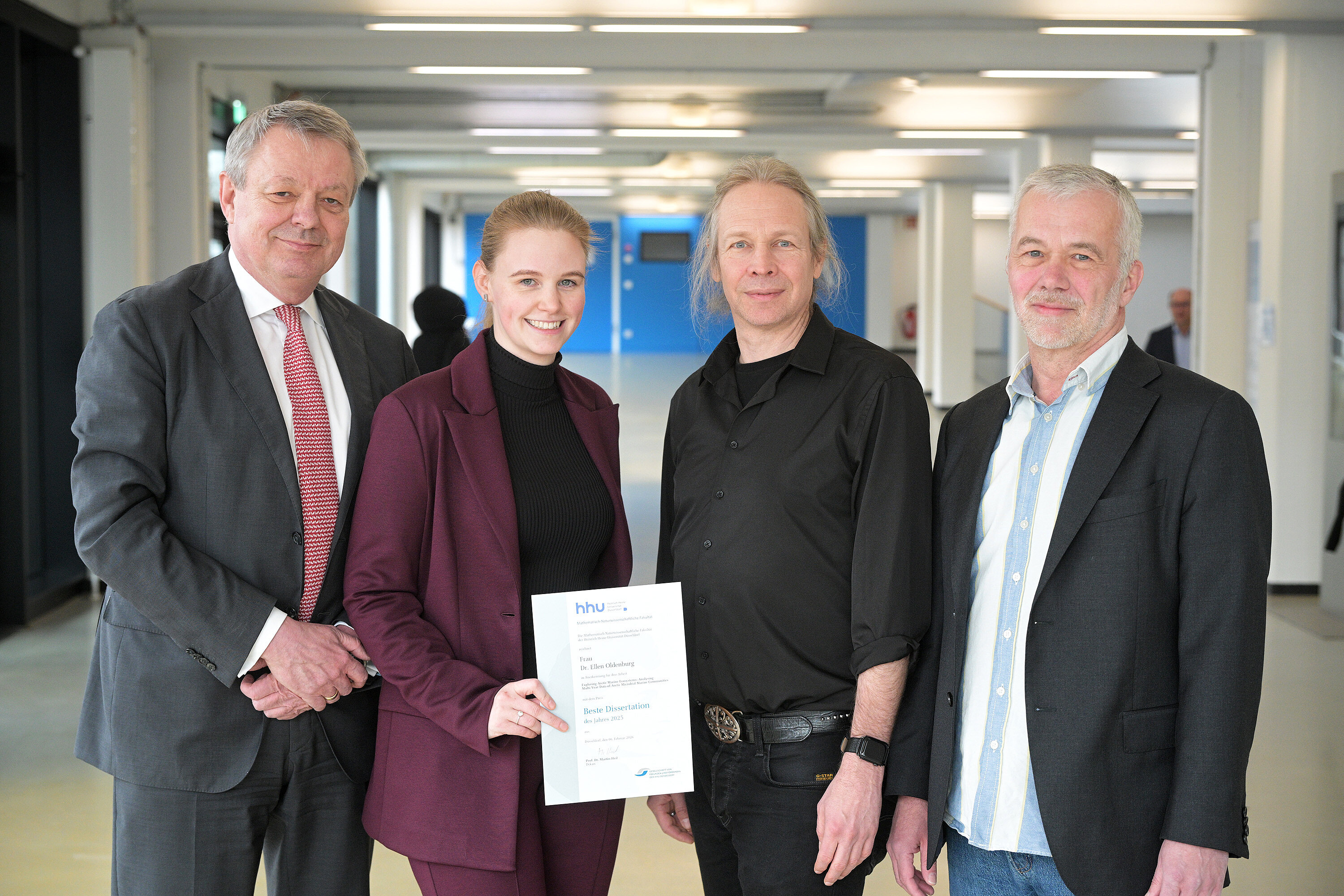 Der Dekan beglückwünschte die Preisträgerin und dankte dem Förderer, der Gesellschaft von Freunden und Förderern der HHU: „Es ist für eine junge Wissenschaftlerin wie Ellen Oldenburg eine besondere Auszeichnung, dass ihre Arbeit als beste Dissertation ihres Jahres geehrt wird. Stellvertretend für ihre Mitpromovenden wird damit die große Anstrengung gewürdigt, die die Doktoranden leisten. Dafür, dass die Freundesgesellschaft diese Auszeichnung fördert, gebührt ihr mein besonderer Dank. Denn mit ihr werden genau die jungen Menschen belohnt, auf deren Schultern der Fortschritt der Wissenschaft ruht!“