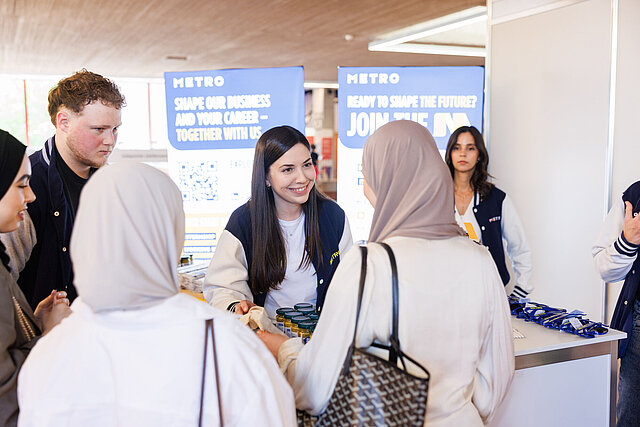 Auf der Campusmesse können Studierende und Absolvent*innen aus Düsseldorf und den umliegenden Hochschulstandorten mit Unternehmen aus den unterschiedlichsten Branchen in Kontakt kommen. An über 80 Messeständen präsentierten 2025 regional, überregional und international agierende Unternehmen rund 2.500 Studierenden ihre Einstiegs- und Karriereangebote für Praktika, praxisorientierte Abschlussarbeiten oder einen möglichen Berufsstart nach dem Studium. Personalverantwortliche geben Antworten auf Fragen rund um den Berufsstart. Ein interessantes Vortrags- und Rahmenprogramm rundet die Campusmesse ab.