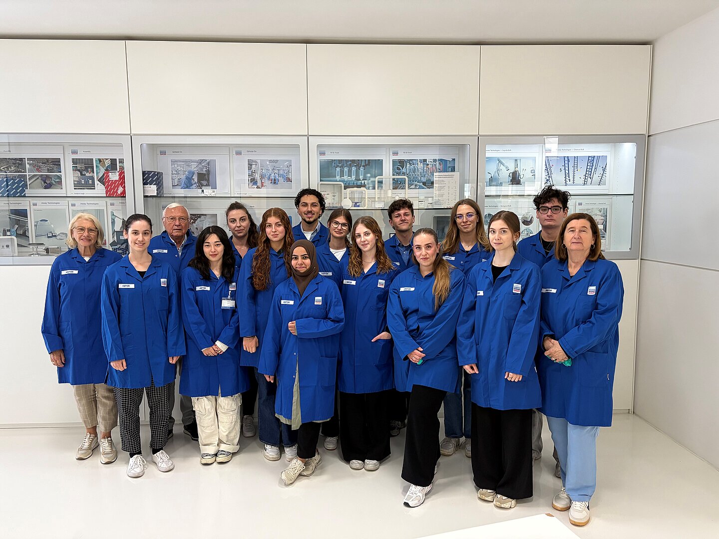 Die Qiagen GmbH hat als langjähriger Stifter des Deutschlandstipendiums am 8.07.2025 Stipendiat*innen und Stipendiaten in die Unternehmenszentrale nach Hilden eingeladen. Dort erwartete die Teilnehmer*innen ein interessantes Programm: Dr. Thomas Schweins, früheres Mitglied des Vorstands bei Qiagen, informierte über den Werdegang des Unternehmens und die Entwicklung zum Marktführer. Die Unternehmensgründung erfolgte im Jahr 1984 durch Herrn Professor Detlev Riesner und drei seiner Doktoranden der HHU. Anwesend waren auch das Stifter-Ehepaar und Professoren Hannelore und Detlev Riesner (beide Ehrensenatoren der HHU). Qiagen gehört heute mit einem Umsatz von 2,26 Milliarden Dollar zu den DAX 40 Unternehmen in Deutschland und ist zudem auch an der New Yorker Börse notiert. Bei den anschließenden Produktionsbesichtigungen bekam man einen Einblick in die Produkte von Qiagen, wie PCR-Tests, HIV- und Tuberkulose Tests sowie den Bereich Life Sciences, der die Bedürfnisse der Forschung und Forensik bedient. Auch die für die Auswertung dieser Tests notwendigen Geräte werden von Qiagen angeboten. Im Anschluss stellten sich Mitarbeitende von Qiagen, die in Biologie bzw. Biochemie promoviert haben, mit ihren persönlichen Karrierewegen vor. So bekamen die Studierenden einen Eindruck, welche Möglichkeiten sich nach Abschluss ihres Studienfachs ergeben können. Abschließend schilderte Frau Burnett, Talent Acquisition and Employer Branding Specialist, den Bewerbungsprozess bei Qiagen und gab im Austausch mit den Stipendiat*innen Tipps für eine erfolgreiche Bewerbung.